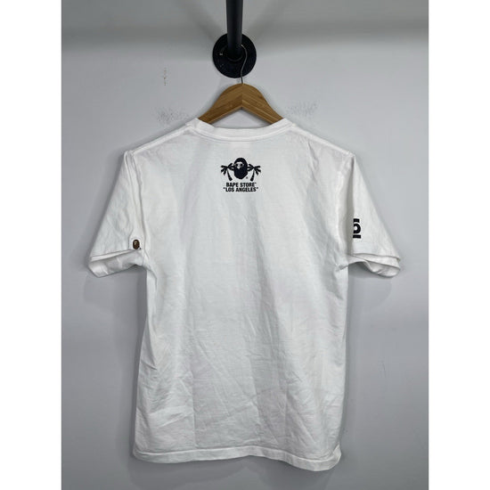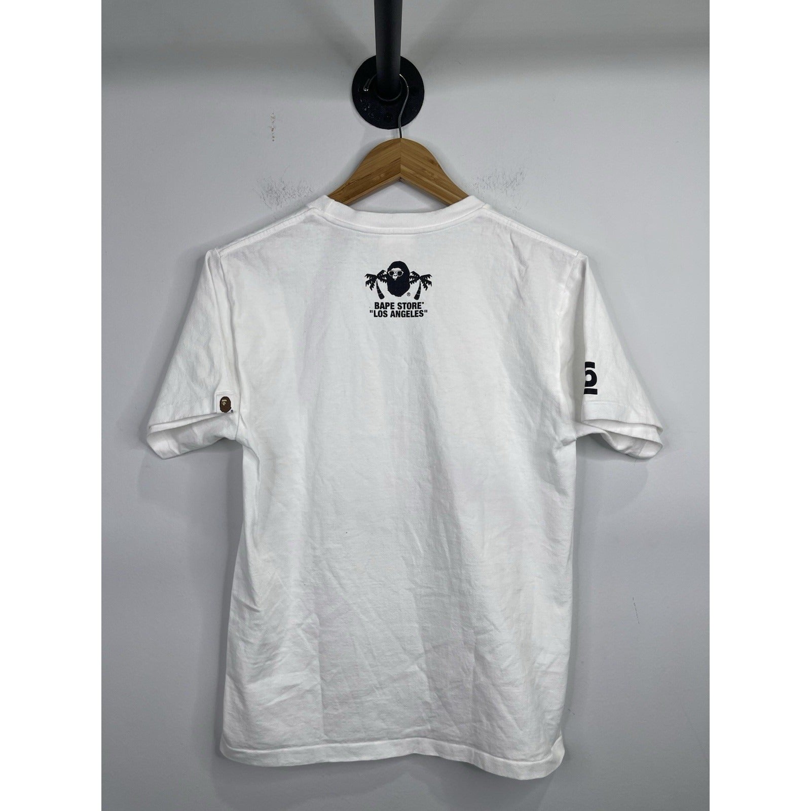 The A BATHING BAPE LAPE Colorful Camo Small T-shirt is a stylish and trendy piece of clothing for men. Made from comfortable cotton material, this regular fit shirt features a colorful camouflage pattern, perfect for adding a fun and vibrant touch to any outfit. The crew neck design and small size make it a versatile and fashionable choice for casual wear.