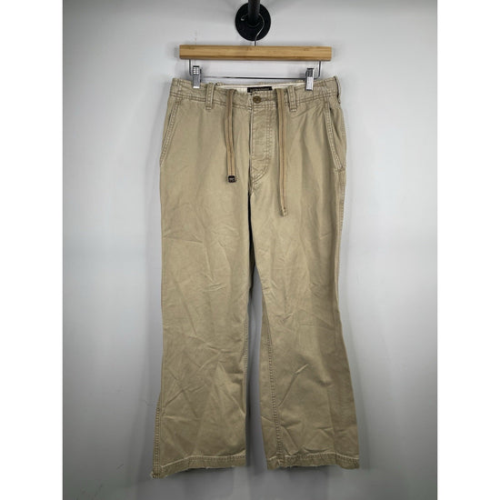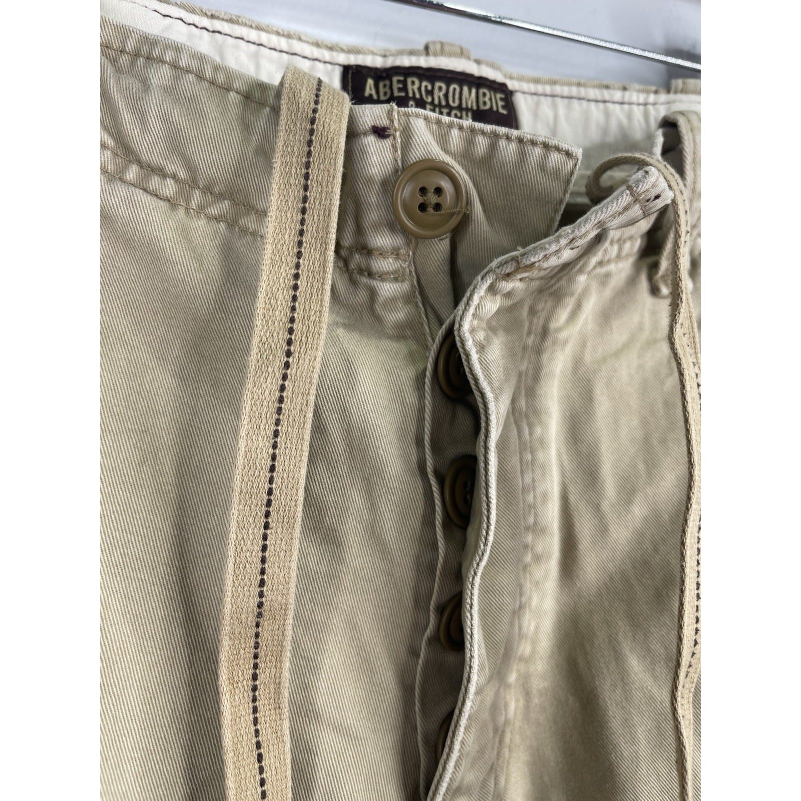 The Abercrombie Vintage Fatigues Pants in Tan are a stylish and versatile addition to any wardrobe. These relaxed fit cargo pants feature a drawstring closure, high rise, and straight leg style. Made from durable cotton material, they are designed for comfort and functionality. With a solid brown color and 5-pocket design, these pants are perfect for various occasions such as travel, casual outings, or workwear. The vintage theme adds a touch of nostalgia, while the numerous features like back pocket buttons and hidden pockets enhance practicality. Ideal for all seasons, these Abercrombie pants are a timeless classic for men sizing 30R.