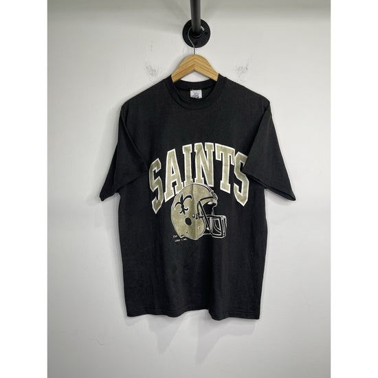 The Adult Logo 7 Tag Made In The US New Orleans Saints T Shirt in black, size XL, is an officially licensed product for fans of the National Football League (NFL). This unisex adult shirt features the team logo of the New Orleans Saints and is perfect for showing support during the regular season games. Made in the USA by Logo 7, this shirt is a stylish and comfortable way for any football enthusiast to represent their favorite team in style.