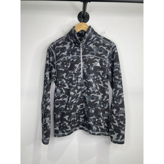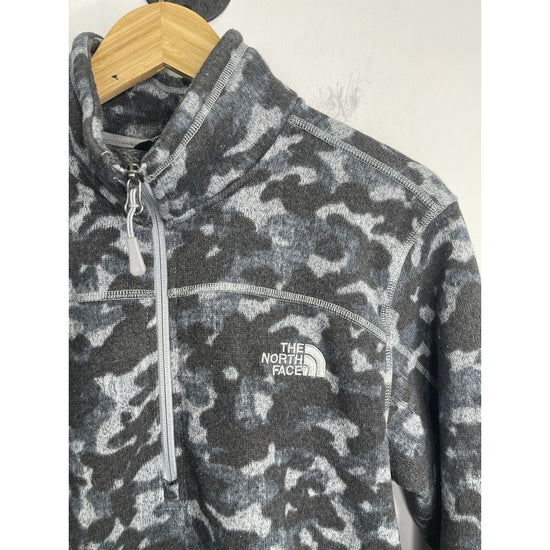 The Adult The North Face Maggy Knit Fleece Full Zip Jacket in Blue Camo, size M, is a versatile and stylish outerwear piece suitable for various occasions such as travel, casual outings, or workwear. Made with polyester outer shell and lining materials, this mid-length jacket features a camouflage pattern with a multicolor design. It has long sleeves, a zip closure, and is accented with embroidered and logo details. With a regular fit and basic jacket style, this outdoor-themed piece is perfect for the winter, fall, and spring seasons, making it a reliable choice for staying warm and comfortable in style.