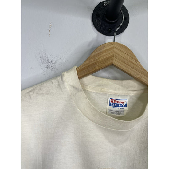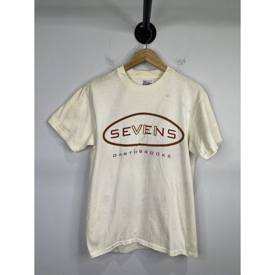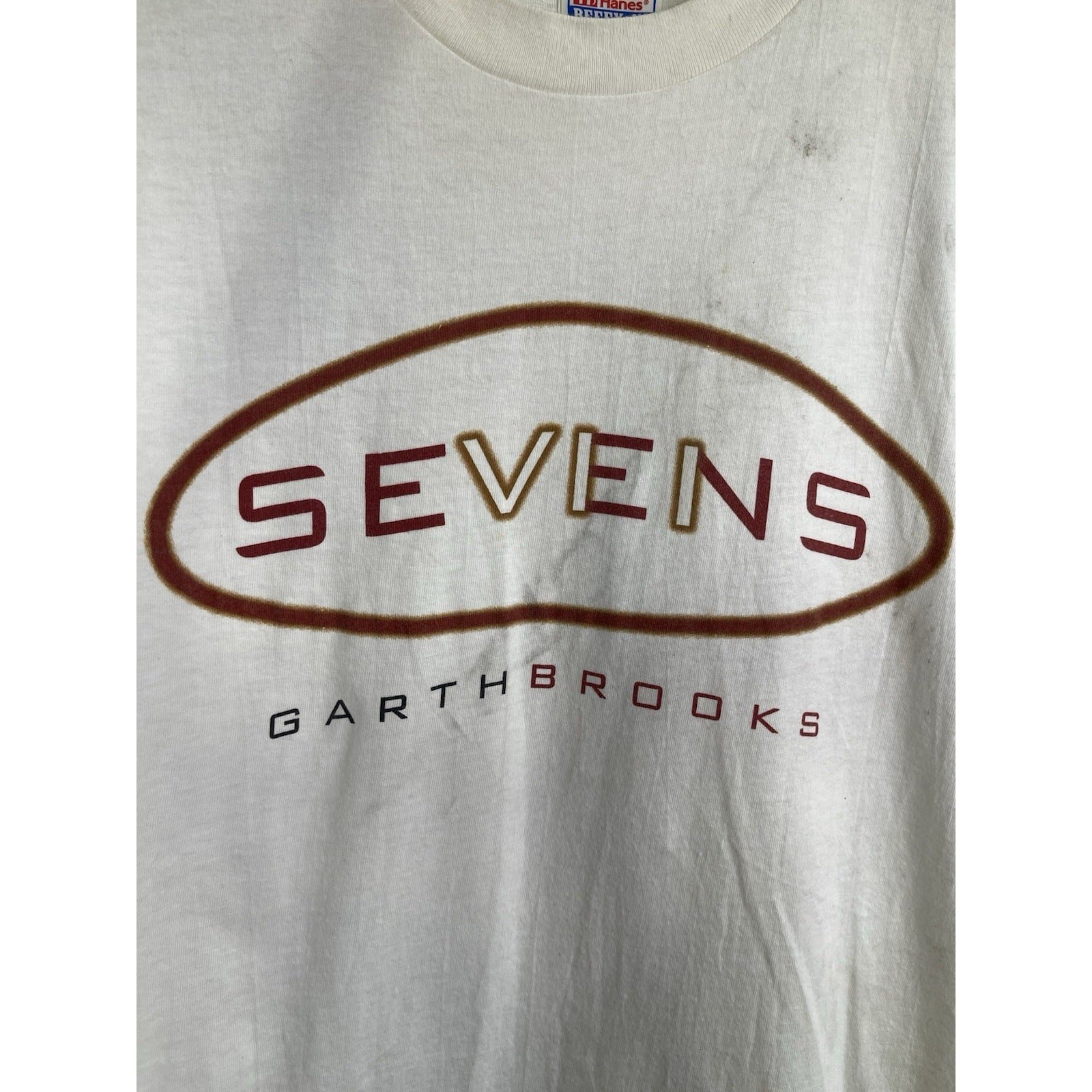 This Adult Vintage Garth Brooks 1998 Sevens White Tour T-Shirt in size M features a graphic print design with a crew neck and short sleeves, made of cotton material. The shirt is double-sided and showcases a music, band, and 90s theme, perfect for any fan of Garth Brooks or vintage music from the 90s. With a regular fit and easy care instructions, this T-shirt is a timeless piece that can be worn all year round for any casual occasion.