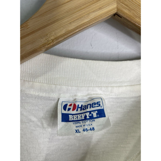 This adult white vintage 90s Maui Built Hawaii Whale Ocean Nature T-Shirt in size XL is a graphic print shirt featuring a crew neckline and short sleeves. Made of cotton and machine washable, this regular fit shirt by Hanes is perfect for any season and showcases a nature, art, and ocean theme typical of the 90s era. Ideal for men, this t-shirt is a unique piece with a vintage feel that represents the iconic imagery of Hawaii and marine life.