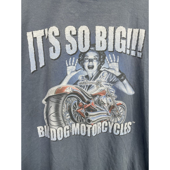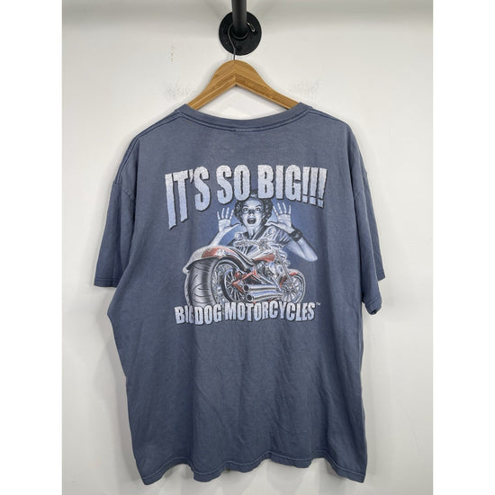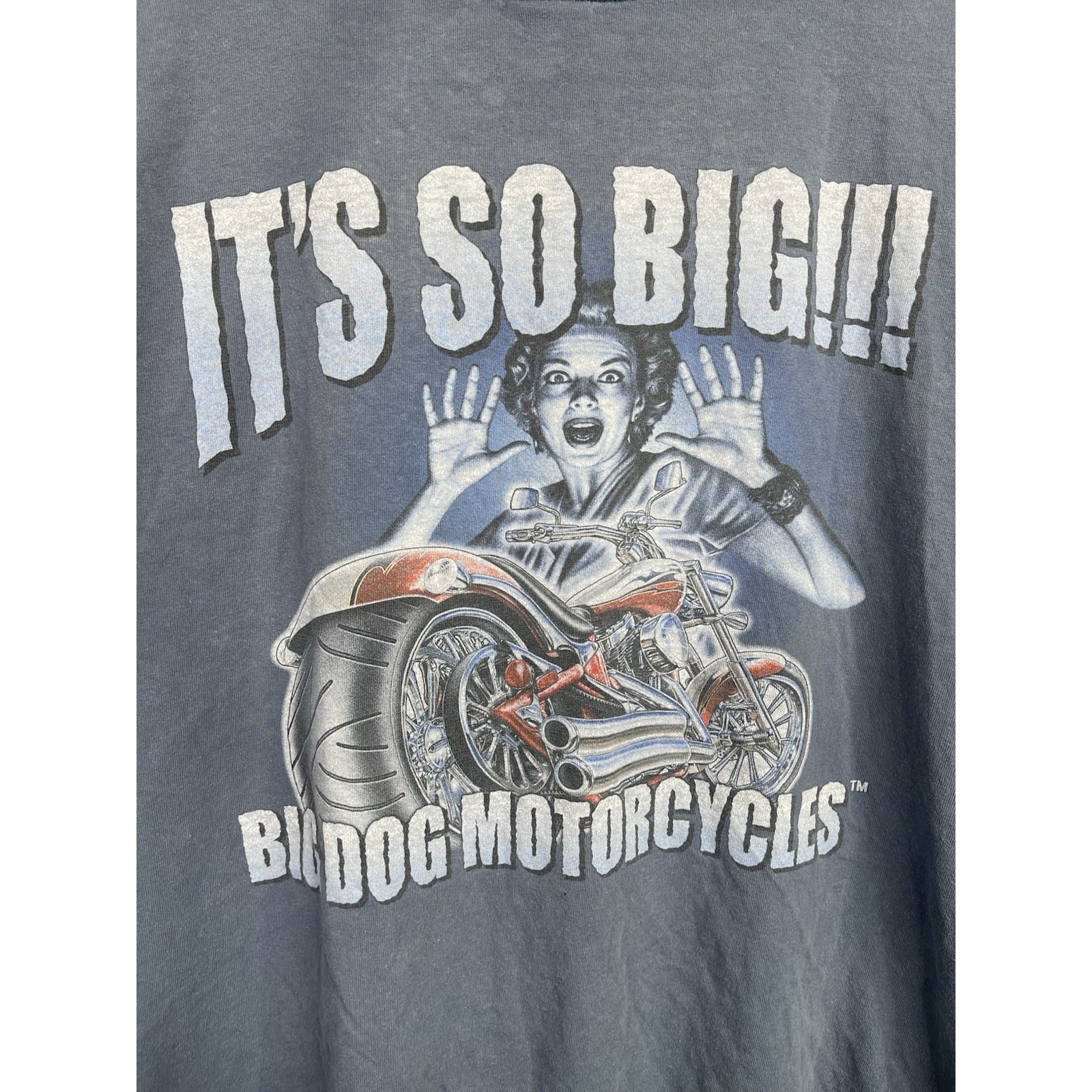 The Big Dogs Motorcycles Size 2XL Blue T-shirt is a vintage style shirt perfect for men who appreciate a regular fit and a bold motorcycle theme. The short sleeve design, crew neck neckline, and blue color add to the overall appeal of this eye-catching tee. With its oversized size and humorous "it's So Big!" slogan, this shirt is sure to make a statement for any biker or motorcycle enthusiast.