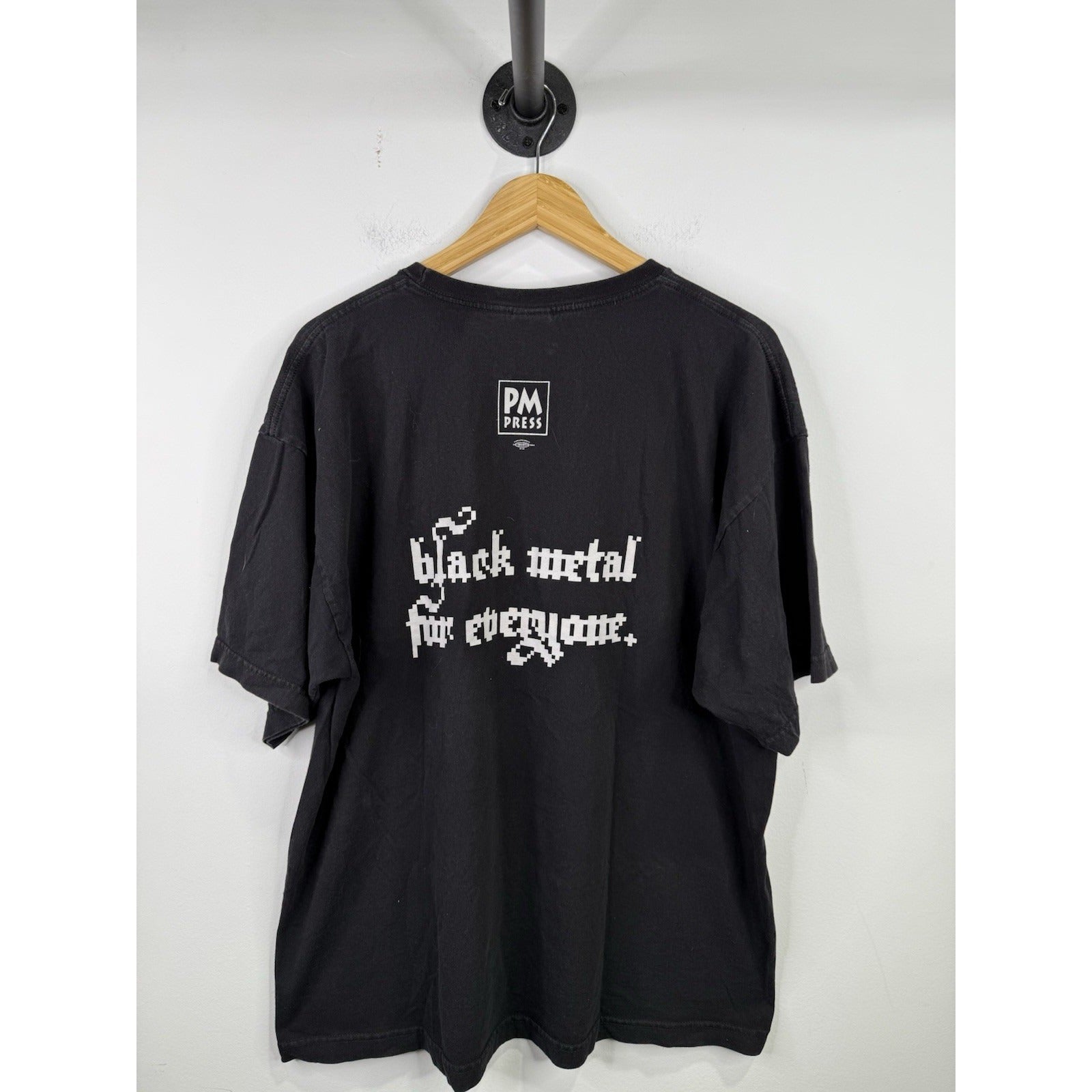 The Black Metal Rainbows "PM Press" Book Promo T-shirt in size 2XL is a stylish and edgy piece of clothing perfect for any metal enthusiast. The black color, rainbow theme, and book promo graphics give off a unique and eye-catching vibe. Made for men, this regular fit t-shirt is designed to be comfortable and fashionable, making it a great addition to any wardrobe. Show off your love for metal and literature with this standout piece from Black Metal Rainbows.