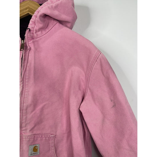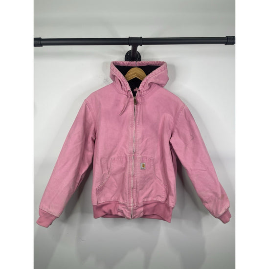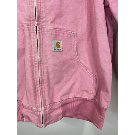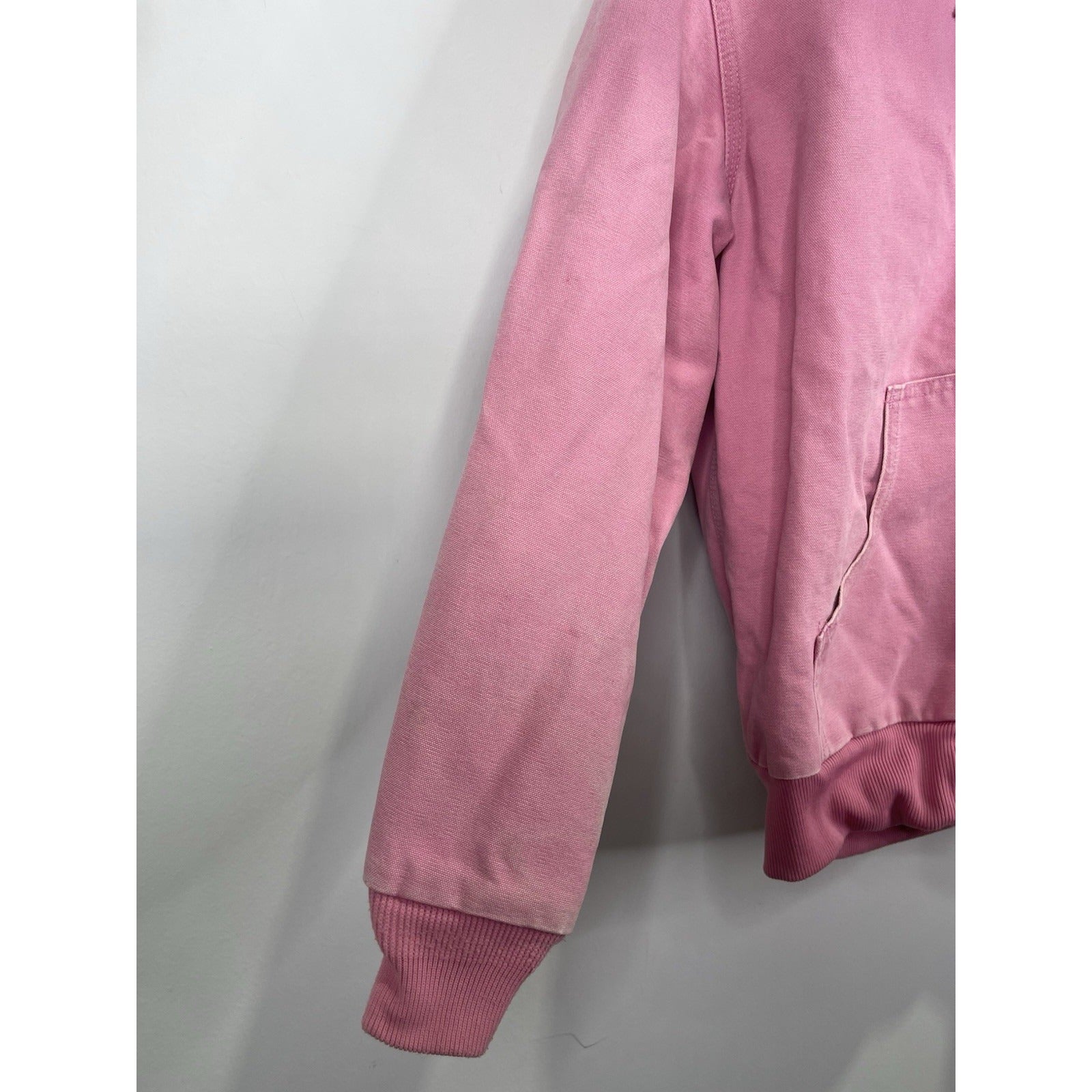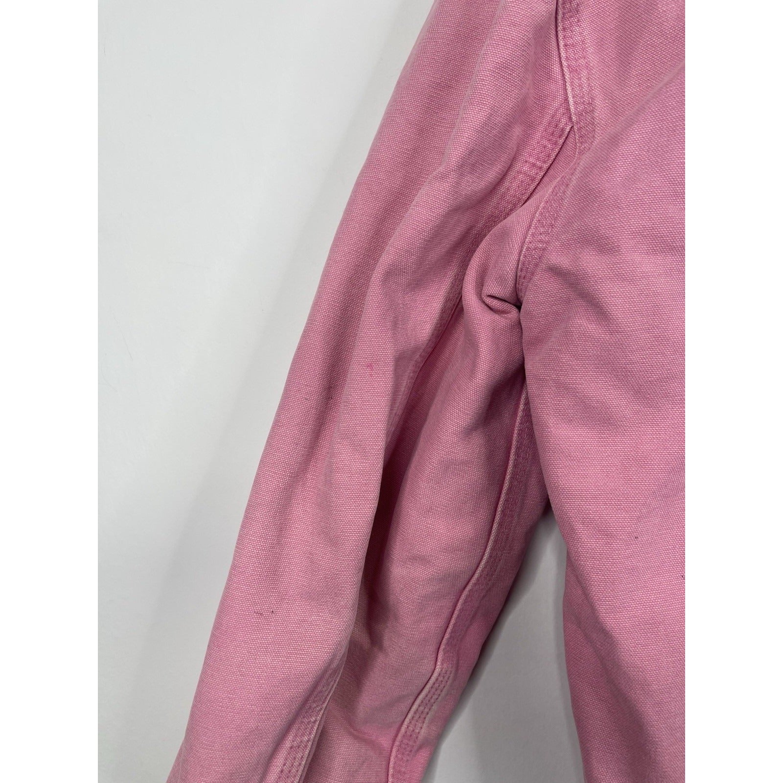 The Carhartt Women's Pink Canvas Active Jacket (WJ130 PKR) in size medium is a stylish and functional outerwear piece for women who are active and on the go. Made of durable cotton canvas with a cozy polyester lining and insulation, this jacket is perfect for fall, winter, and spring seasons. Featuring a quilted design, full zip closure, and convenient pockets, this mid-length jacket is ideal for travel and casual occasions. The pink color adds a fun pop of color to any outfit, making it a versatile and practical addition to any woman's wardrobe.