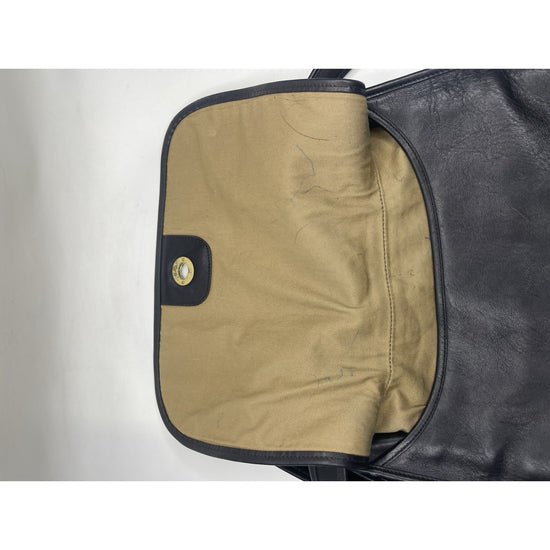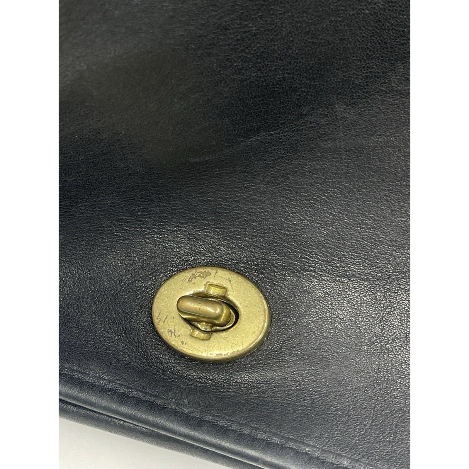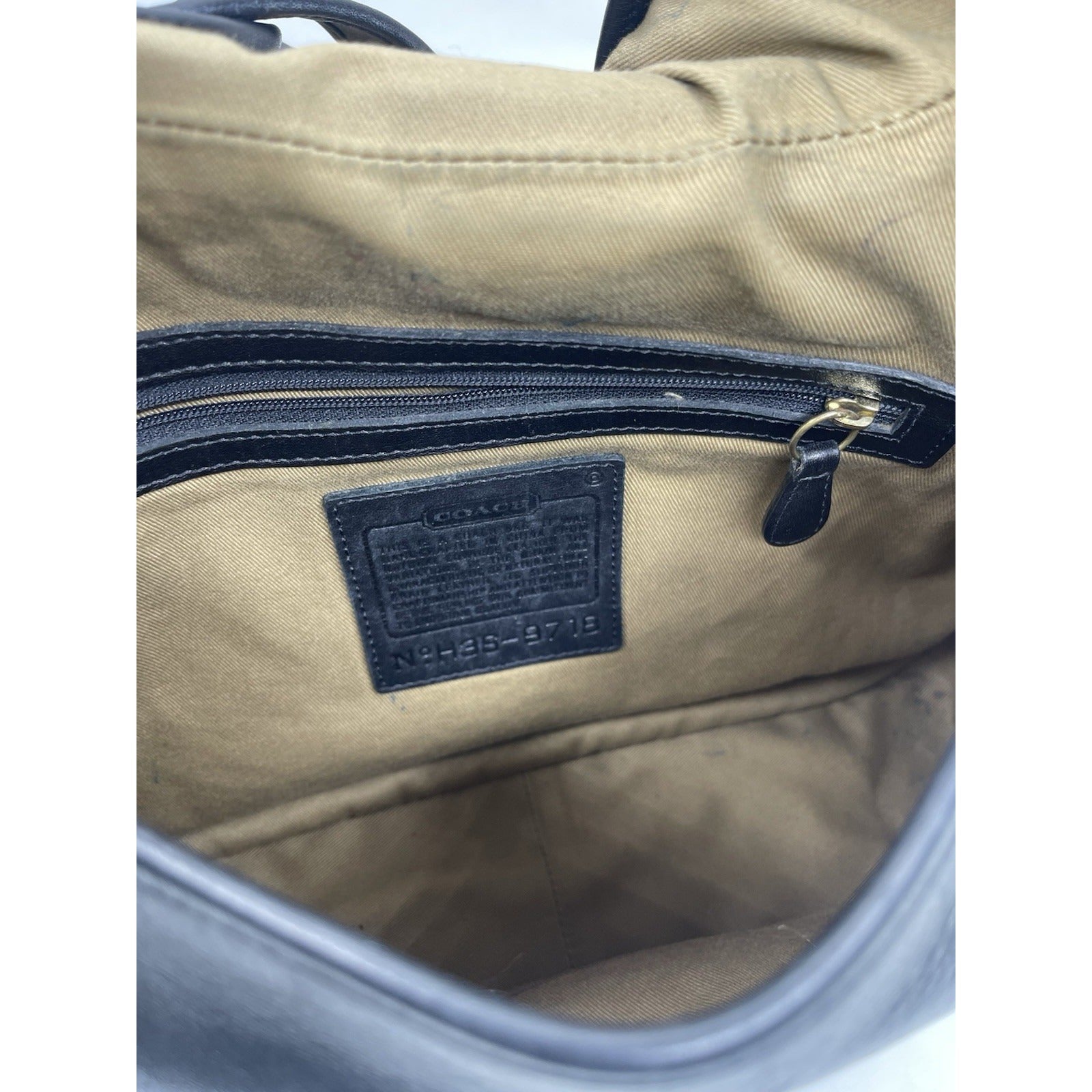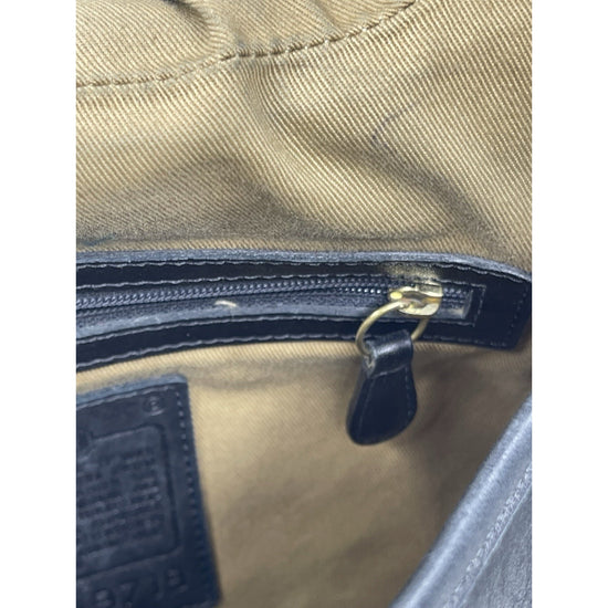 The Coach Legacy Crescent Bag in Black Leather is a stylish and vintage-inspired purse that can be worn as a hobo or crossbody. Featuring a unique crescent shape and a turn lock closure, this shoulder bag exudes classic elegance with a modern twist. The black exterior with gold hardware adds a touch of sophistication, while the black leather handle and bag charm add a touch of luxury. Perfect for women who appreciate timeless craftsmanship and quality design, this Coach Legacy bag is a must-have accessory for any fashion-forward wardrobe.