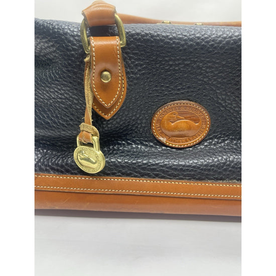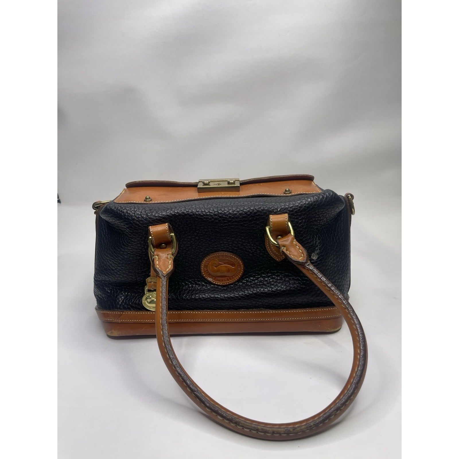 The Dooney & Bourke Lot All Weather Leather Handbag is a versatile and stylish accessory perfect for women on the go. Made with durable leather in a classic rectangular shape, this medium-sized bag featuring a solid brown exterior and pebbled finish is both functional and fashionable. The brown leather handle/strap adds a touch of sophistication, while the interior is lined with leather and includes inner pockets for organization. This designer handbag is a must-have for those looking for a timeless and high-quality accessory to complement their everyday look.
