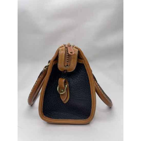 The Dooney & Bourke Tote Bag in Boston Navy Vintage Limited Edition is a rare and highly sought-after designer handbag. This medium-sized rectangular tote features a multicolor button closure and accents, with various fabric and hardware materials used in the design. The limited edition piece boasts the iconic Dooney & Bourke logo and a multicolor lining, making it a stylish and practical accessory for travel, parties, or casual outings. Made in Japan, this vintage model showcases the brand's classic design and attention to detail.