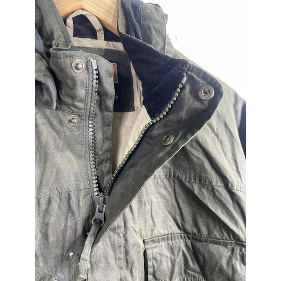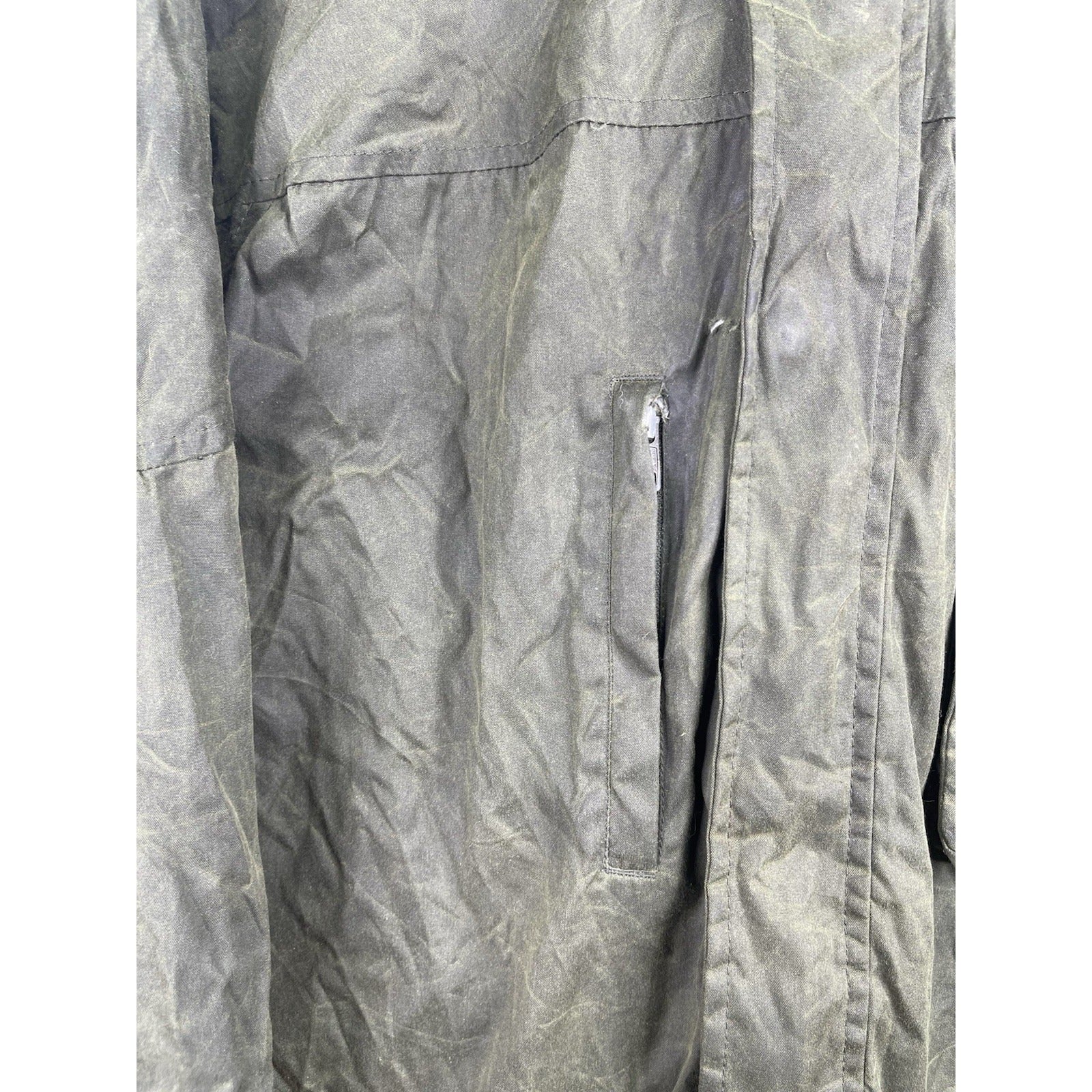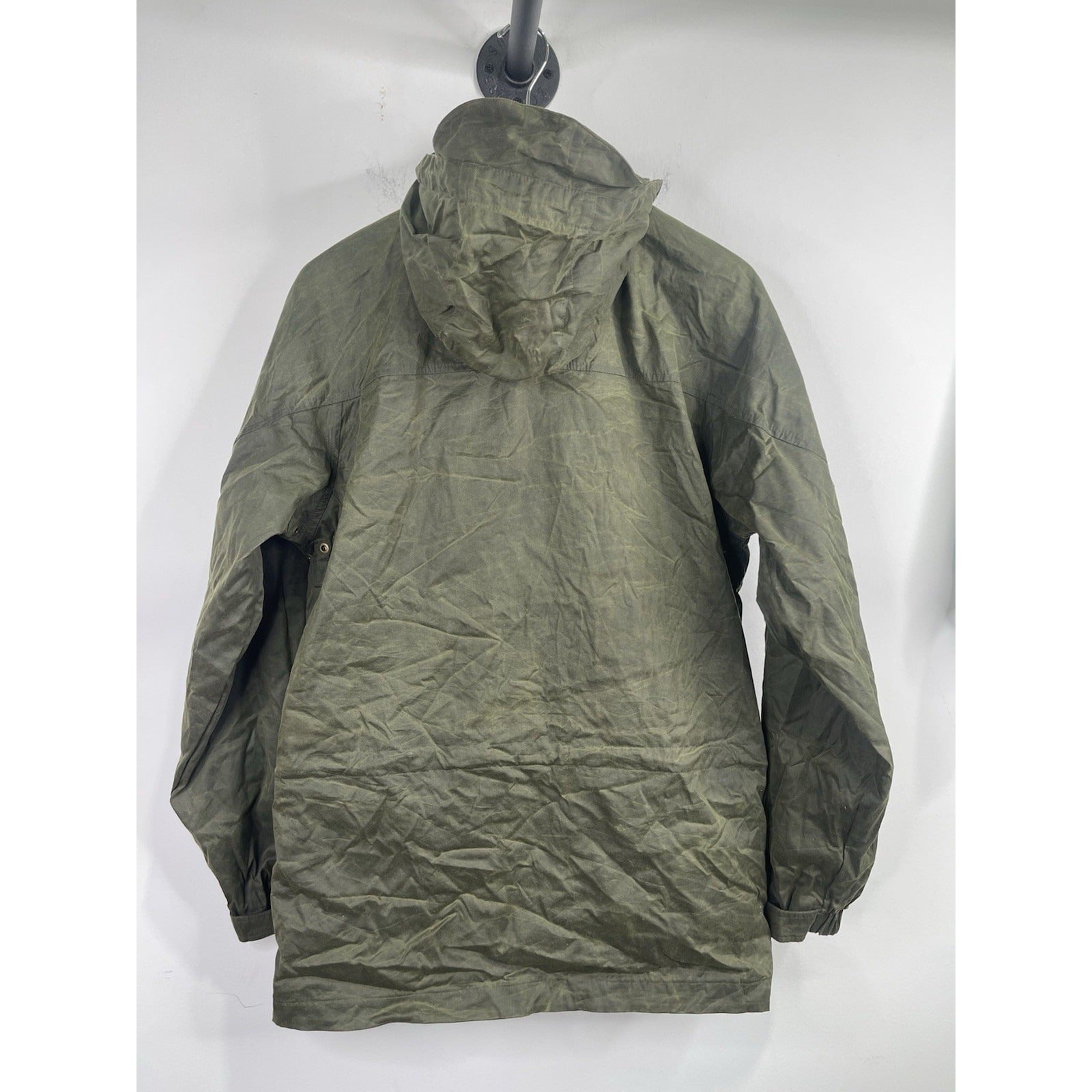 The Duluth Trading Co Men’s Olive Green Hooded Insulated Work Jacket in size M is a versatile and practical outerwear piece. Made of a durable nylon blend fabric with insulated polyester lining, this jacket is perfect for casual wear or work in winter and fall. It features a stand-up hood, full zip closure, adjustable cuffs, and convenient pockets with snap buttons. The olive green color and solid pattern make it a classic addition to any wardrobe, while the brand's reputation for quality and performance ensures that it will be a reliable choice for outdoor activities or tough work environments.