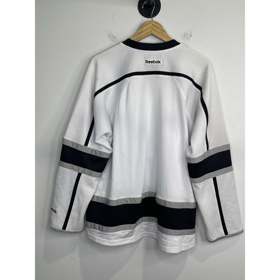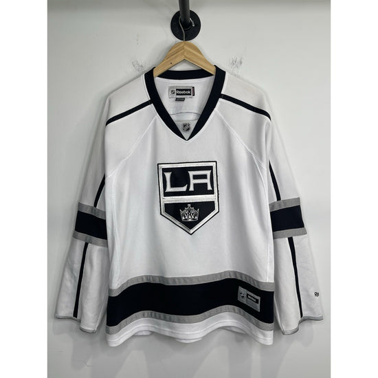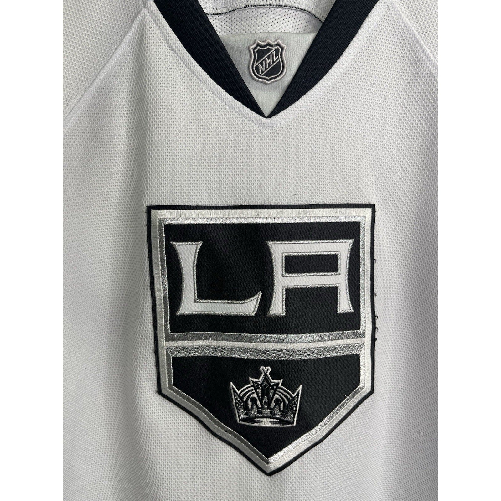 The product is a Fanatics NHL LA Kings Breakaway White Hockey Jersey in Women's size XXL. It features the Los Angeles Kings team colors of white and black, making it a perfect choice for female fans of the NHL team. The jersey is officially licensed by the NHL and is designed for regular season wear, showcasing team logos and imagery. Made in Indonesia, this jersey is a must-have for any Kings supporter looking to represent their favorite team in style.