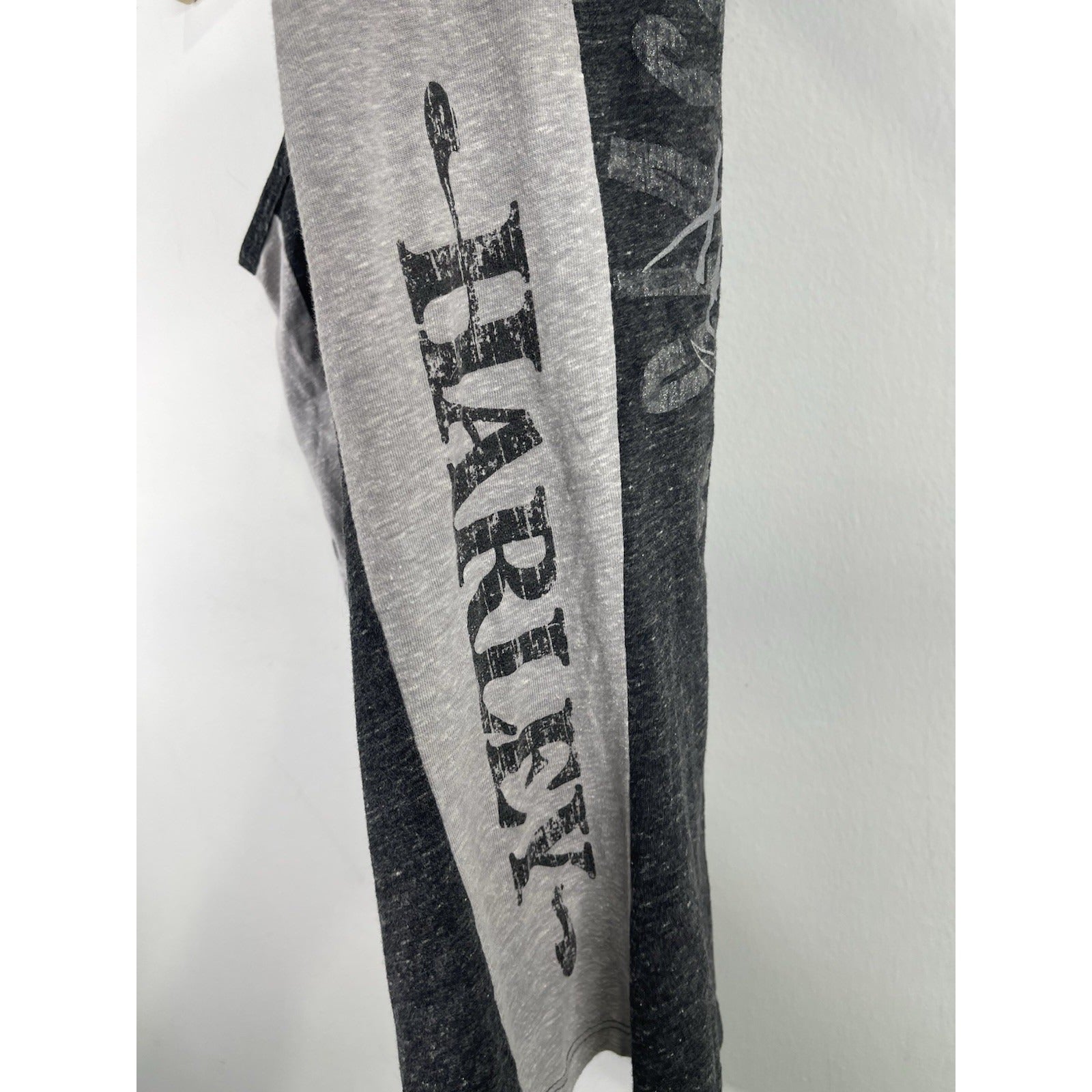 The Harley Davidson Tank Top for women in size L features a classic ride design in Paducah, KY with a scoop neckline and sleeveless style. Made from a blend of polyester, rayon, and cotton, this top is lightweight and breathable, making it perfect for everyday wear. The gray and black colors with the Harley-Davidson logo accents add a touch of vintage style to the basic tank top, which offers a regular fit for a comfortable and flattering look.
