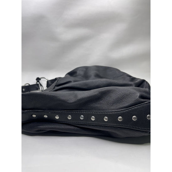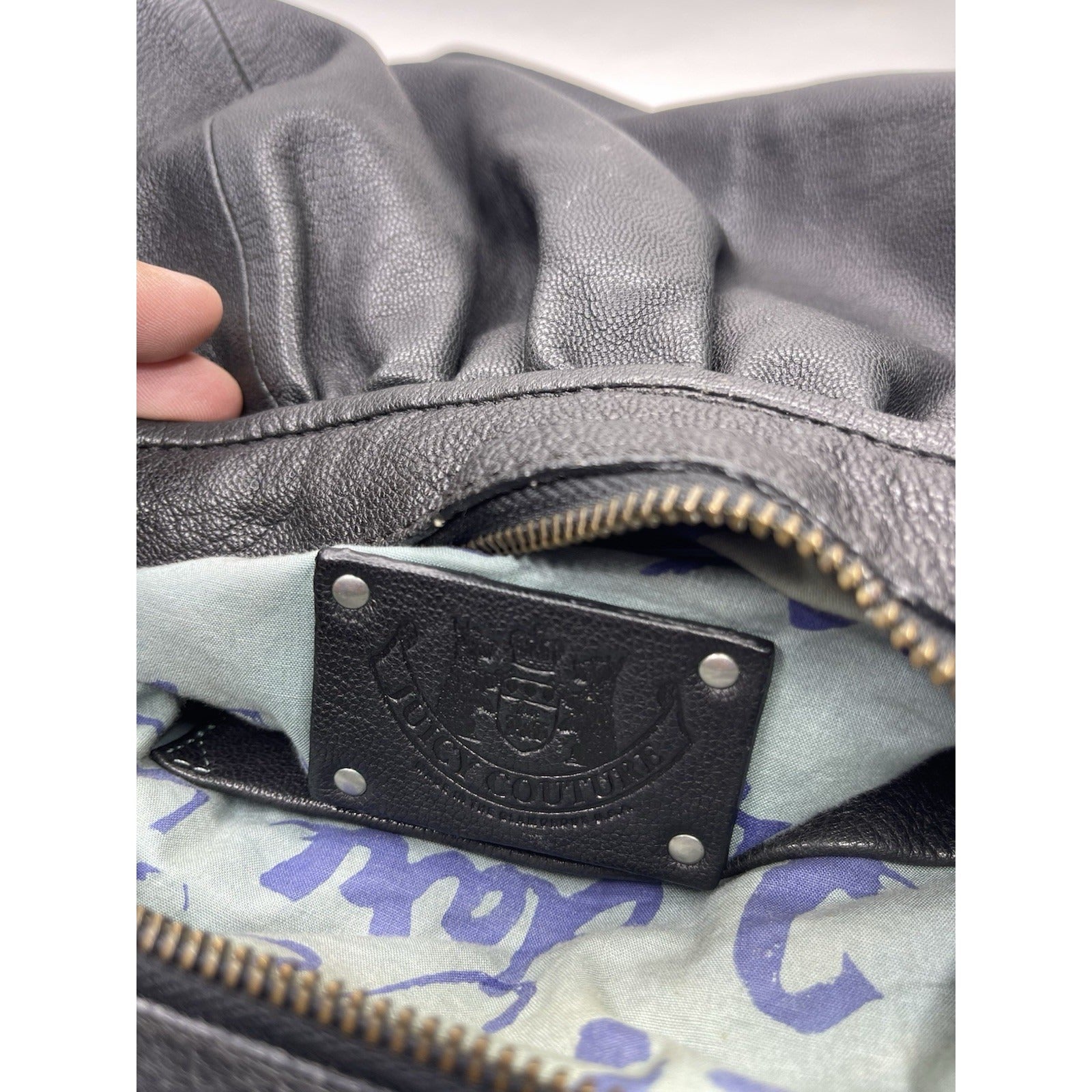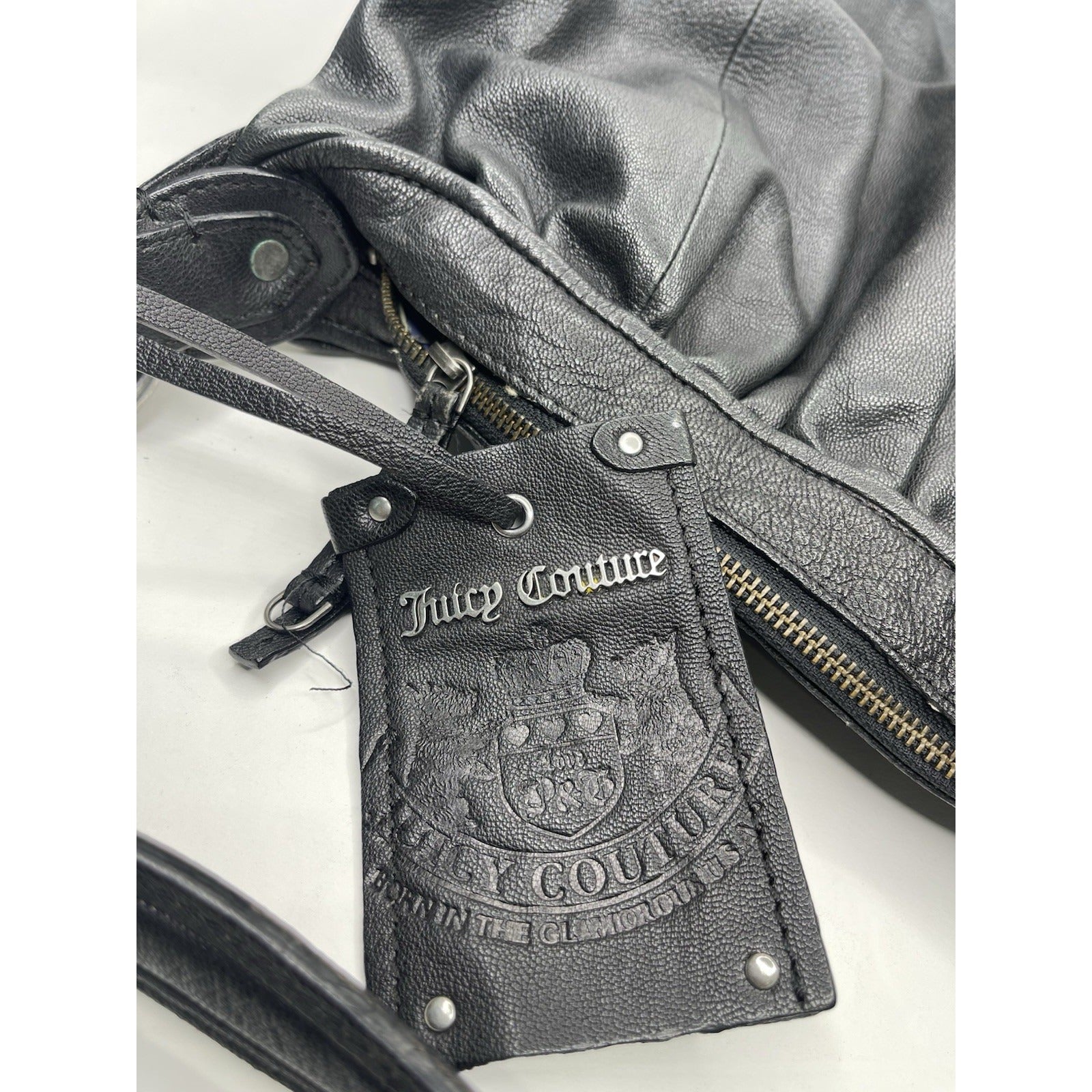 The JUICY COUTURE Heavy Black Leather Hobo Bag Purse is a stylish and durable handbag designed for women. Made of high-quality leather with brass hardware, this medium-sized bag features a solid black exterior color with a modern hobo style. The bag has a convenient strap drop of 7 inches and rugged fixtures, making it a fashionable and practical accessory for everyday use. Made in China by the renowned brand Juicy Couture, this purse is perfect for adding a touch of luxury to any outfit.121`