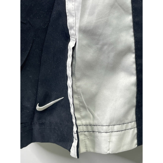 The Kids Y2k Nike Black & White Small 4-6 Track Sweatpants are vintage style activewear pants designed for boys. Made from a blend of polyester and cotton with a fleece fabric type, these sweatpants feature a black color with a waist size of 28 inches and an inseam of 31 inches. Perfect for running and jogging activities, these Nike pants have a classic black and white design and are ideal for kids aged 4-6 who enjoy a sporty look. Perfect for both casual wear and active pursuits, these sweatpants are a stylish addition to any young boy's wardrobe.