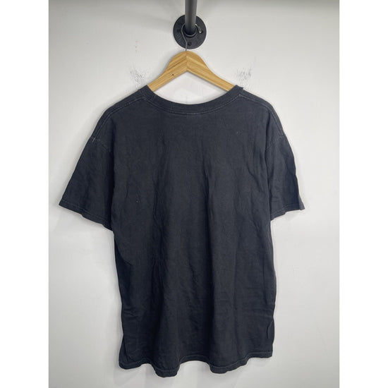 Vintage late 2000's Demon Hunter Band Black T-shirt in size Large is a vintage piece that would appeal to fans of the band or those who appreciate a classic, edgy look. Made of comfortable cotton material, this regular fit shirt features short sleeves and a crew neckline, making it a versatile and stylish addition to any man's wardrobe. The black color adds a touch of darkness to the already moody theme, perfect for those who like to make a statement with their clothing choices.