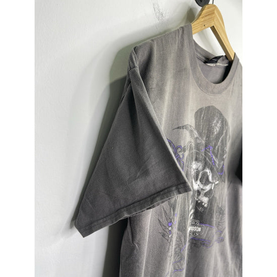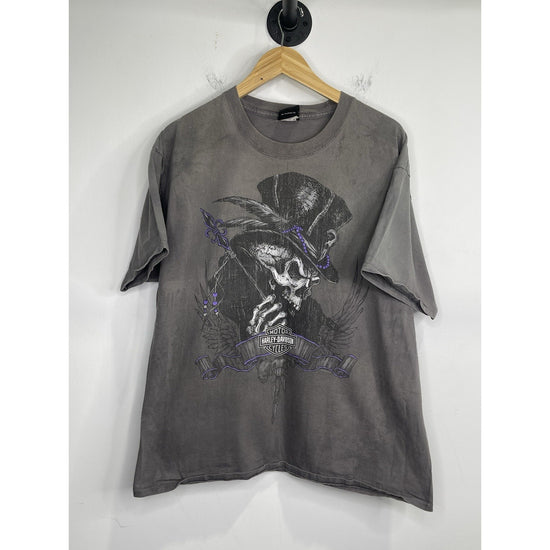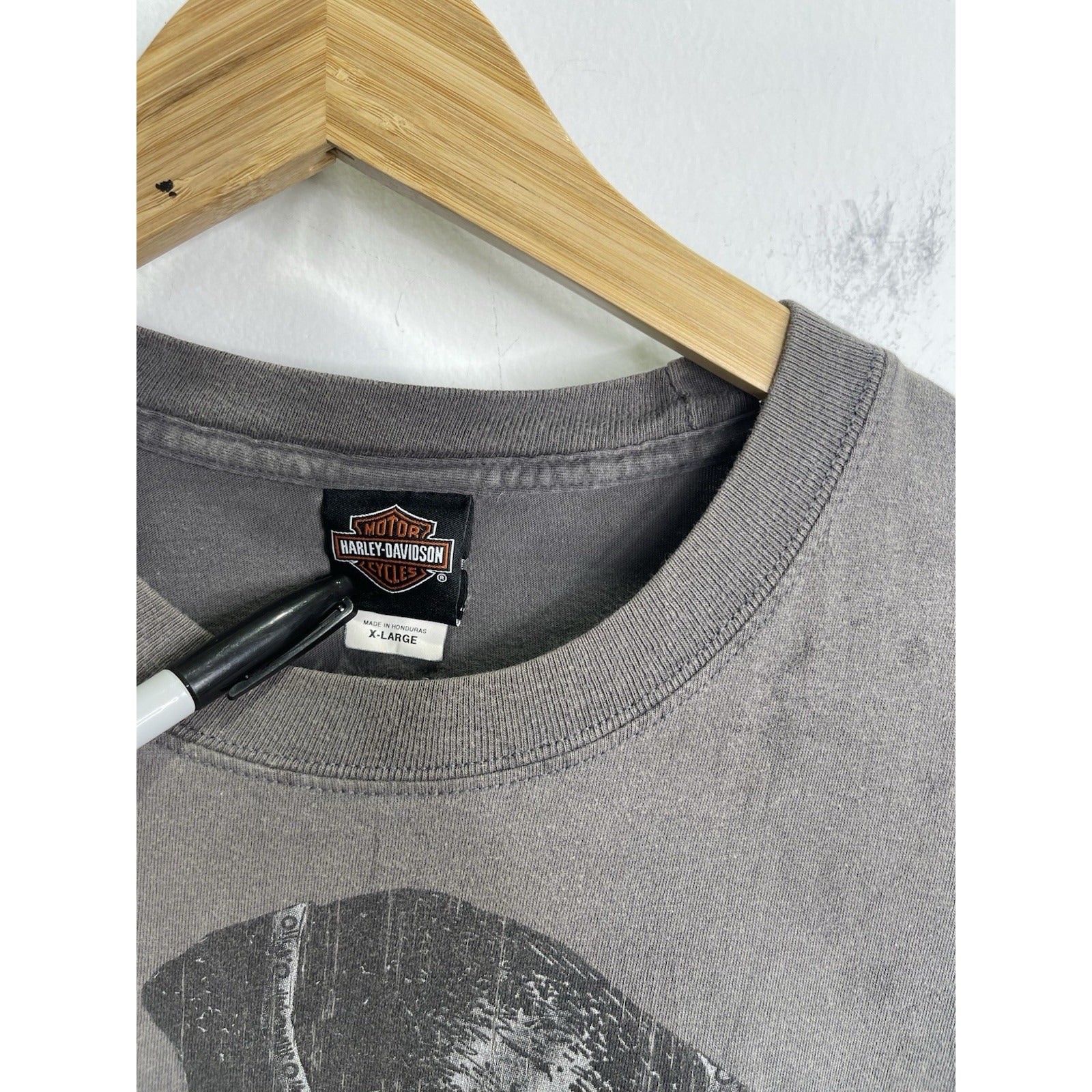 This Men's 2018 HD Voodoo Harley Davidson Graphic Double Sided T-Shirt in size XL features a regular fit with a crew neck and short sleeves, made of cotton material in a gray color. The shirt showcases a graphic print of the Harley-Davidson logo, perfect for motorcycle and biker enthusiasts. With its double-sided design, this shirt is a stylish and comfortable addition to any man's wardrobe, representing the iconic brand of Harley-Davidson.