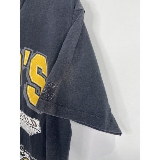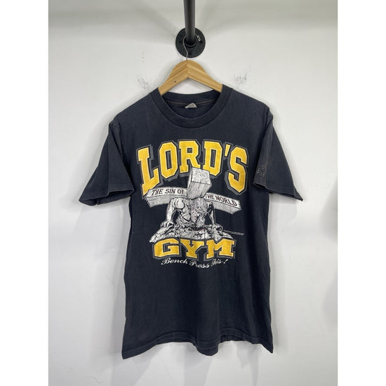 This Men's 90s Vintage Jesus Tee from the Living Epistles Lords Gym is a double-sided t-shirt featuring a graphic print with a portrait of Jesus on one side and the Living Epistles logo on the other. Made from cotton fabric, this black shirt with a crew neckline and short sleeves is perfect for the summer, fall, and spring seasons. The regular fit and vintage design make it a unique and meaningful addition to any man's wardrobe, with a theme that combines faith and 90s style.