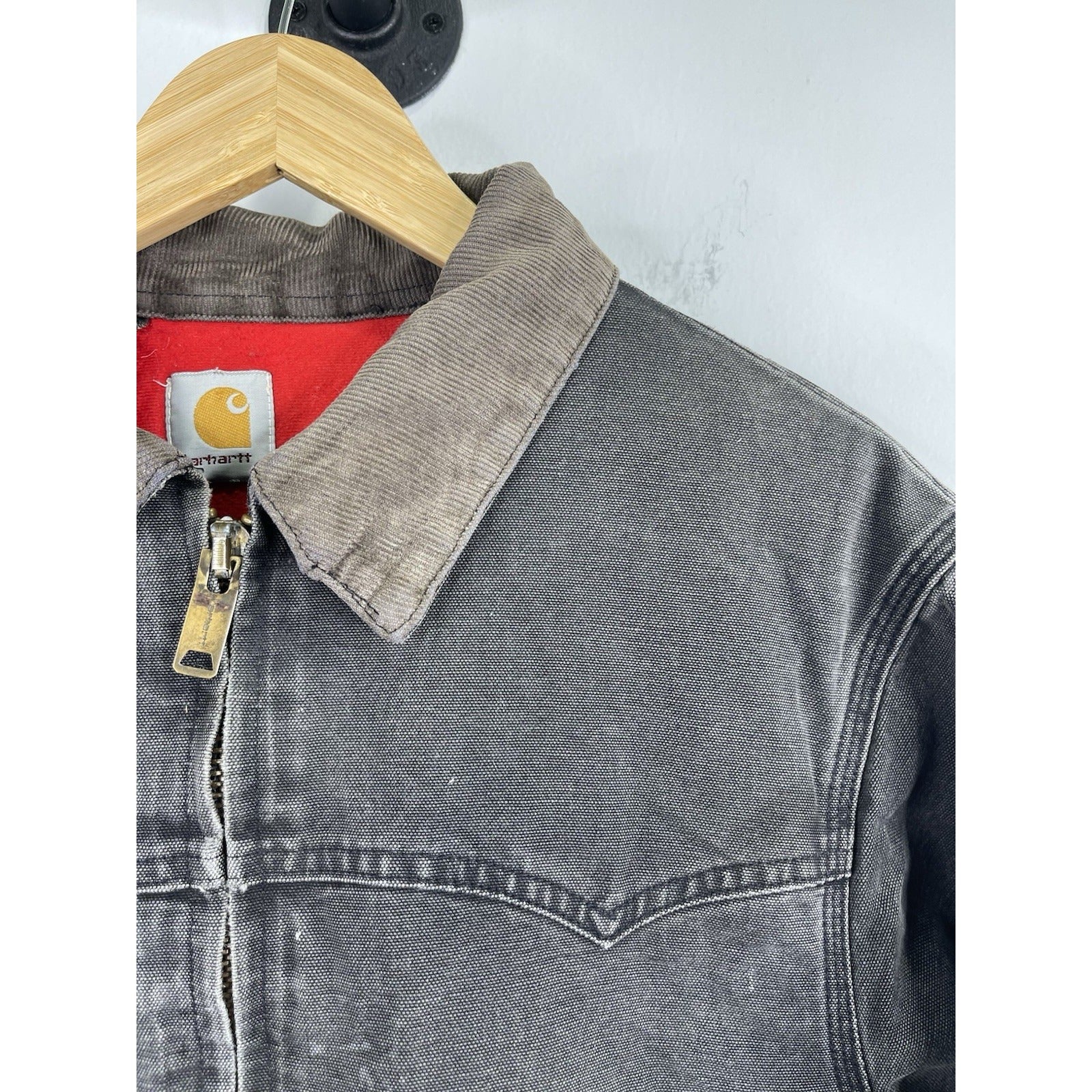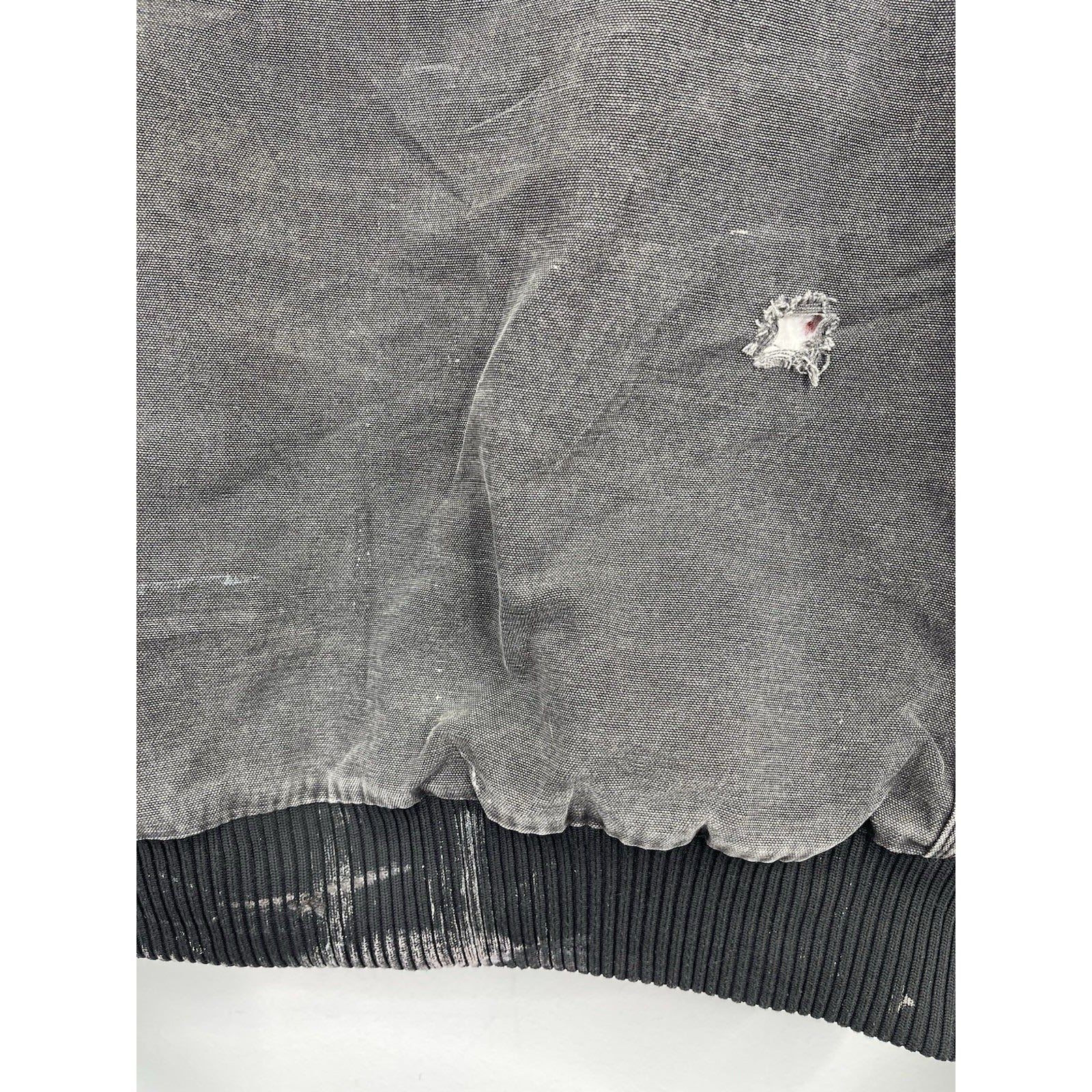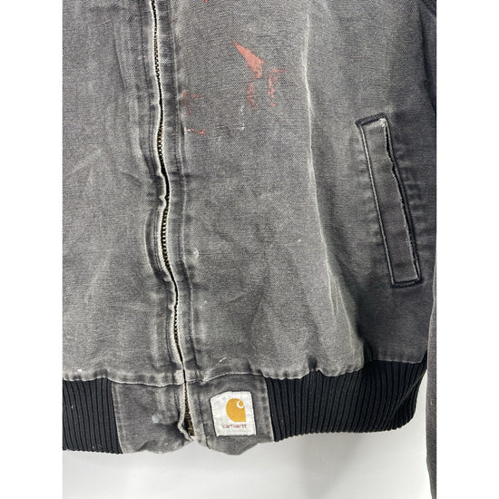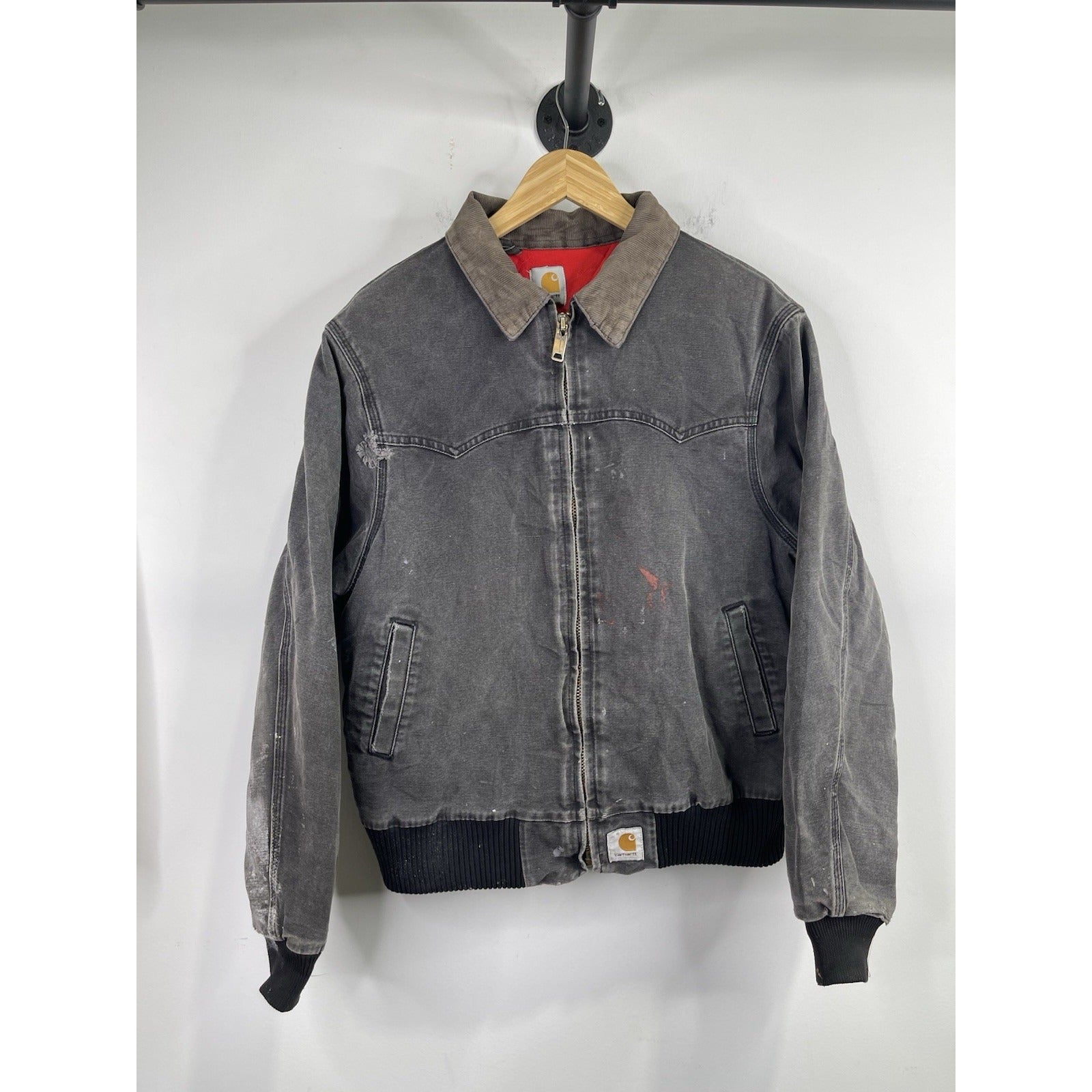 The Men’s Black Denim Carhartt Santa Fe Red Lining Bomber Jacket in size Large is a vintage style work jacket perfect for those who appreciate a rugged, classic look. Made with durable cotton canvas and lined with cozy blanket material, this jacket is ideal for all seasons. The iconic black color, red lining, and Carhartt brand add a touch of Americana flair to the piece, making it a versatile and stylish addition to any man's wardrobe. With a zip closure and big and tall size, this jacket offers both functionality and a retro aesthetic.