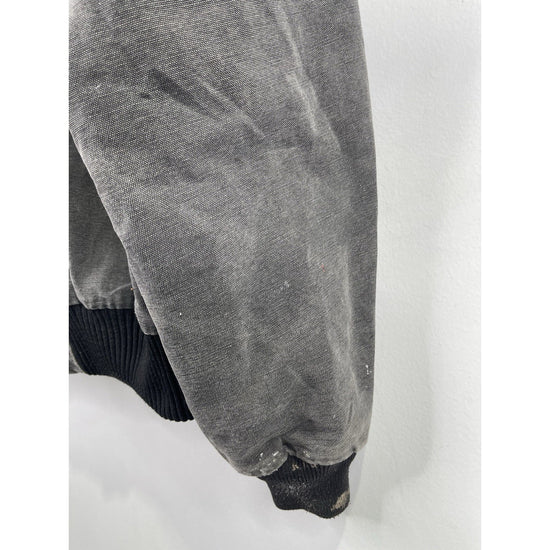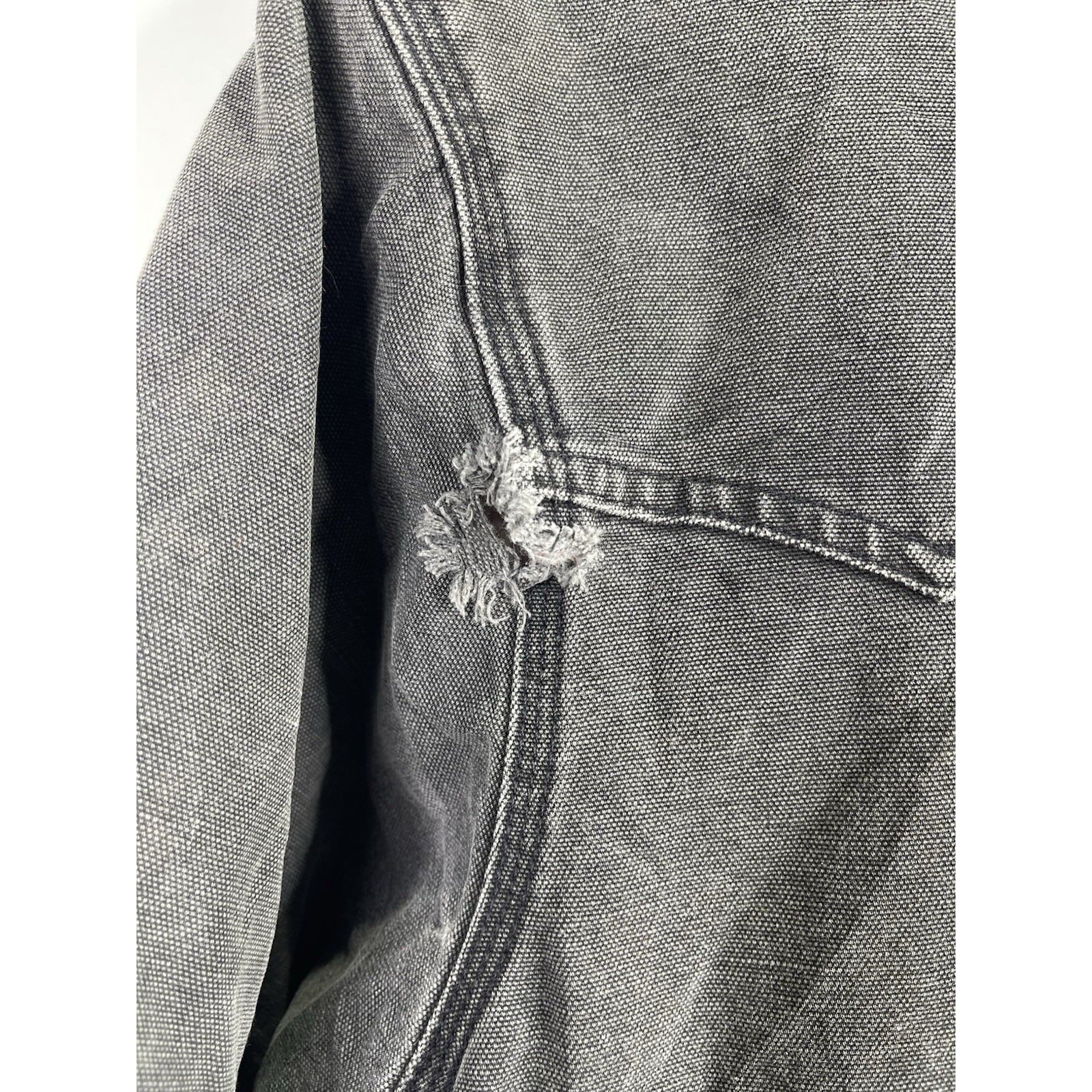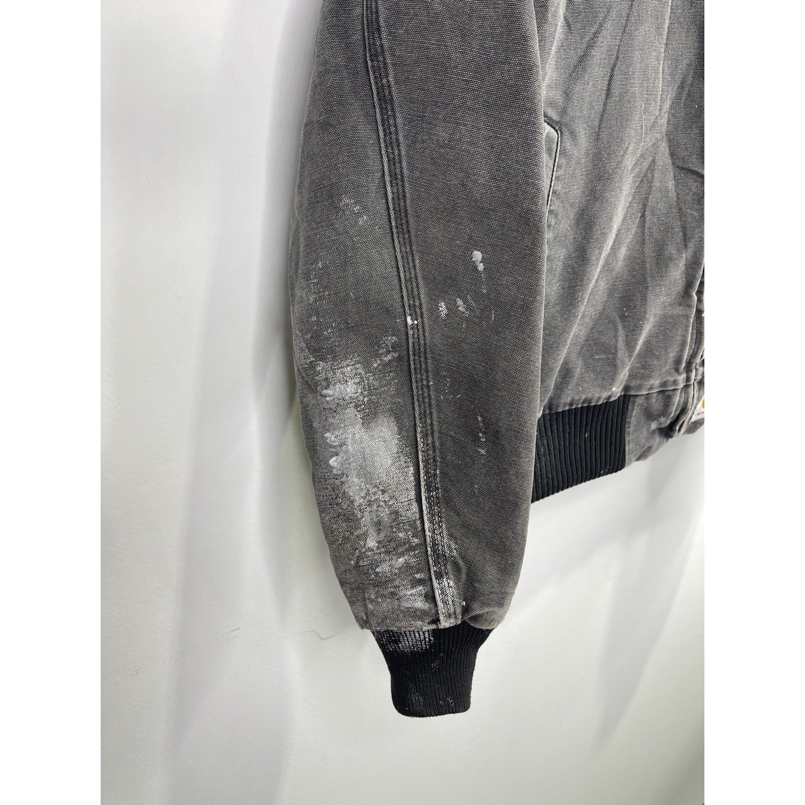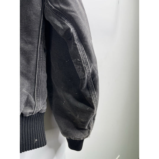 The Men’s Black Denim Carhartt Santa Fe Red Lining Bomber Jacket in size Large is a vintage style work jacket perfect for those who appreciate a rugged, classic look. Made with durable cotton canvas and lined with cozy blanket material, this jacket is ideal for all seasons. The iconic black color, red lining, and Carhartt brand add a touch of Americana flair to the piece, making it a versatile and stylish addition to any man's wardrobe. With a zip closure and big and tall size, this jacket offers both functionality and a retro aesthetic.