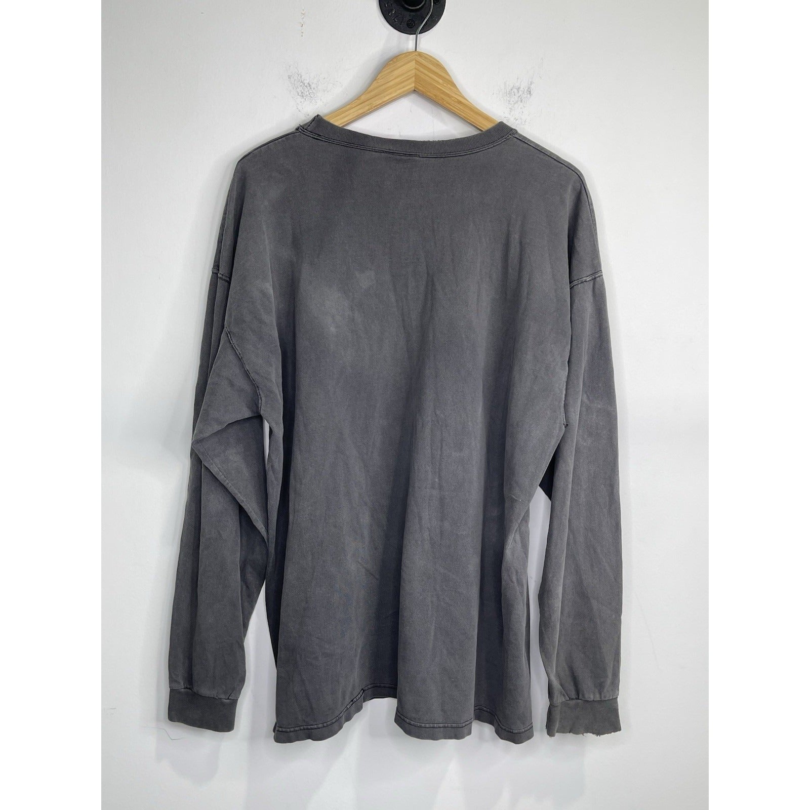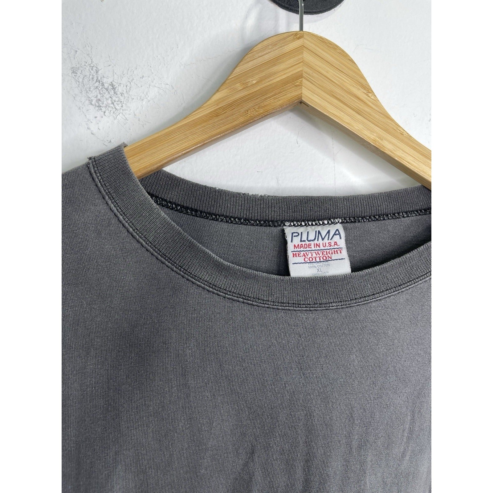 This Men's Black Faded Pluma Tag Heavyweight Cotton Long Sleeve Shirt in size XL is a classic vintage piece perfect for those with a grunge or classic style. Made from solid black cotton with a crew neck and long sleeves, this shirt offers a timeless appeal with its heavyweight feel and Pluma brand tag. The XL size ensures a comfortable regular fit for men looking to add a versatile and stylish piece to their wardrobe.