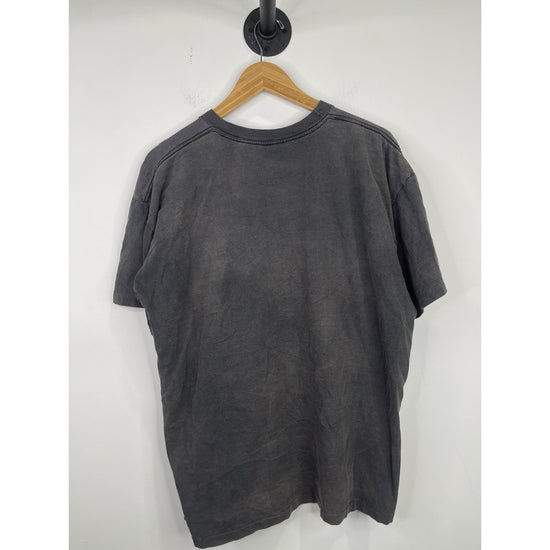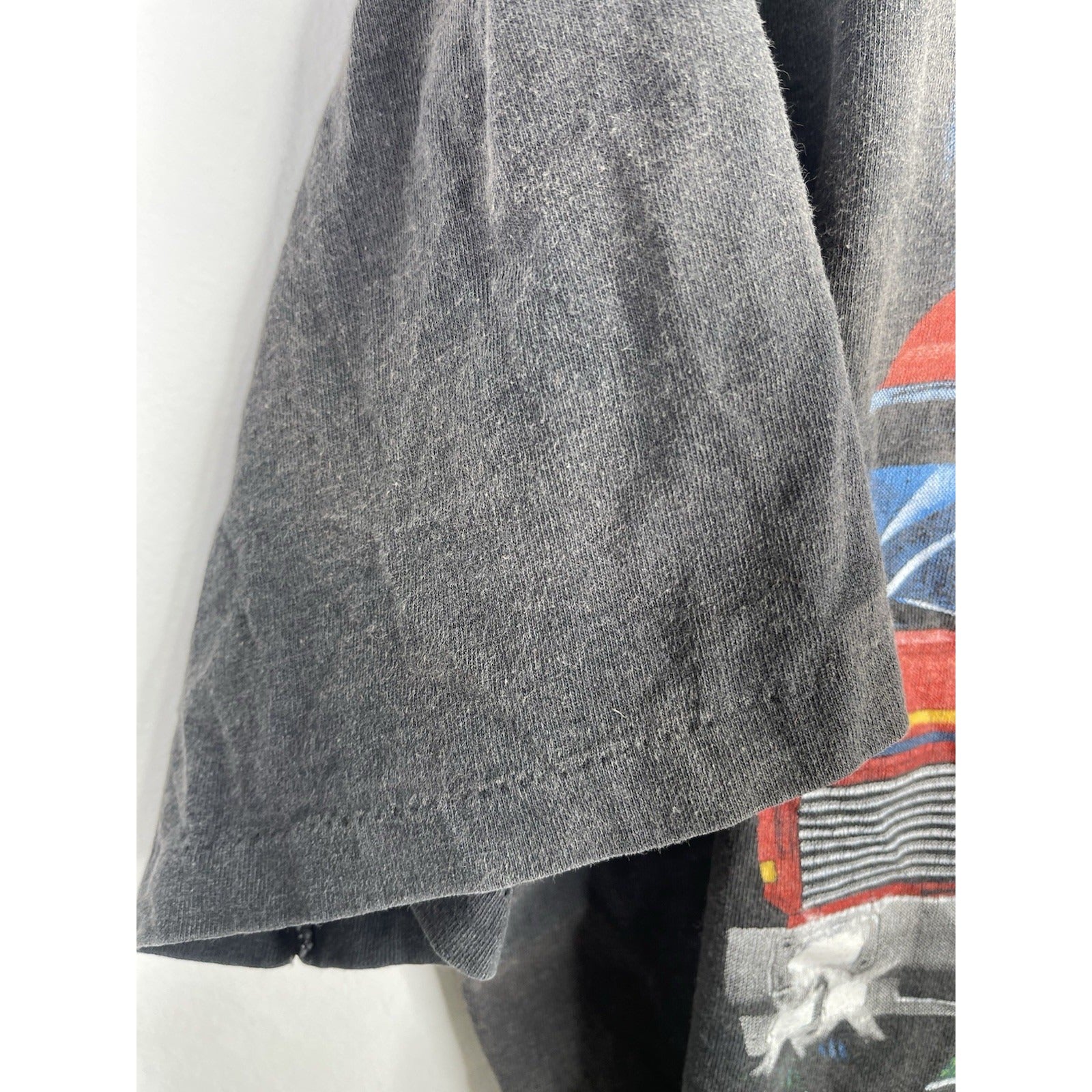 This Men’s Black Vintage TurboStar Running Bull Graphic T-Shirt in size XL is a stylish and unique addition to any wardrobe. Made from comfortable cotton material, this short sleeve shirt features a crew neckline and a regular fit. The graphic print showcases a retro design with a bull motif, perfect for fans of vintage fashion and 90s style. With a double-sided print and easy care instructions, this shirt is ideal for all seasons and can be proudly made at the beach.