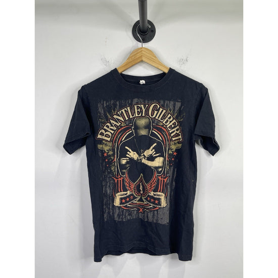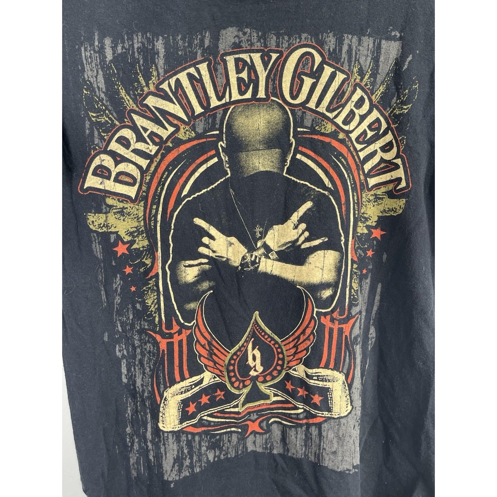 This Men's Brantley Gilbert shirt is a black short sleeve pullover with a vintage Anvil tag, featuring a solid pattern and made of cotton knit fabric. The shirt has a regular fit and is lightweight, making it suitable for all seasons. With themes of classic and hip hop, this T-shirt is perfect for any casual outfit, whether for winter, summer, fall, or spring. Its breathable material and comfortable size small make it a versatile addition to any wardrobe.