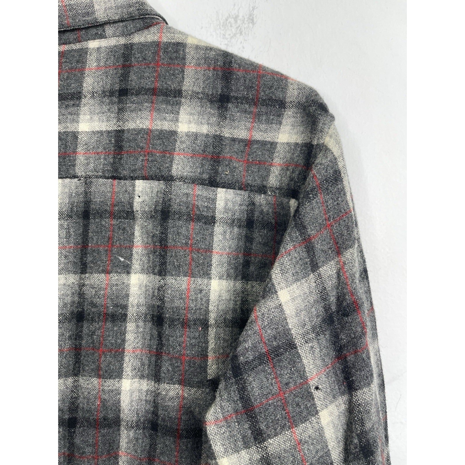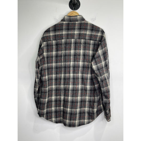 The Men’s Briggs Black & Red Plaid Button Down Long Sleeve Heavy Shirt in size L is a classic and stylish addition to any man's wardrobe. Made from a blend of 85% wool and 15% nylon, this shirt offers a comfortable and warm fit for cooler days. The button-down collar and regular fit add to the timeless appeal of this versatile piece, perfect for casual or more dressed-up occasions. With the brand's reputation for quality and style, this shirt is sure to become a go-to favorite for any man looking for a classic and durable wardrobe staple.