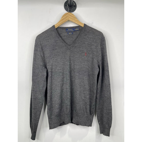 This Men’s Dark Gray Polo Ralph Lauren Lightweight V Neck Long Sleeve Shirt in size S is a stylish and versatile addition to any man's wardrobe. Made from wool, this pullover sweater features a classic solid gray color with a V-neckline and long sleeves, making it perfect for outdoor activities like walking, golf, or hiking. Its lightweight design ensures comfort and breathability, while the designer brand adds a touch of sophistication. Perfect for layering or wearing on its own, this sweater is a timeless piece with a hint of outdoor appeal.