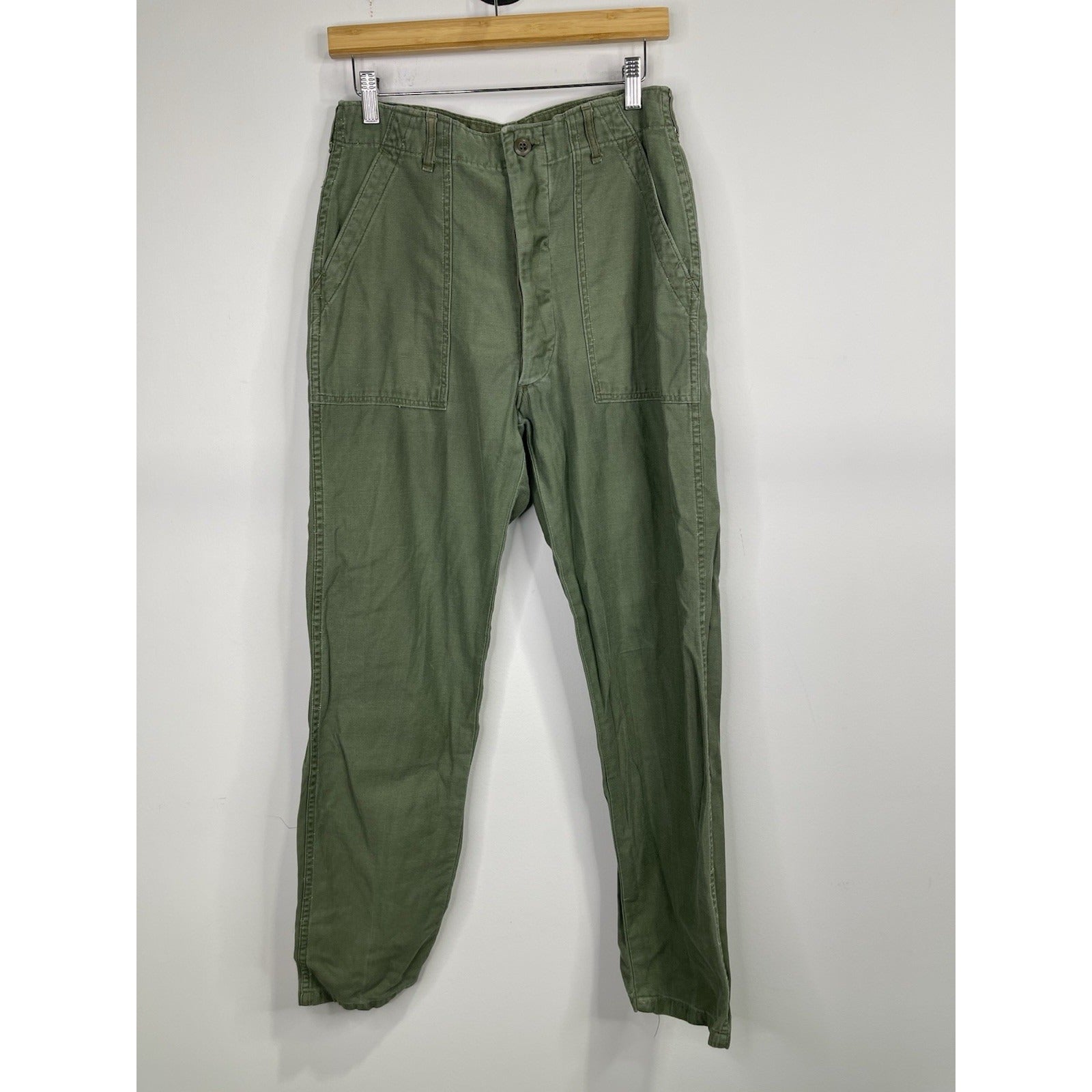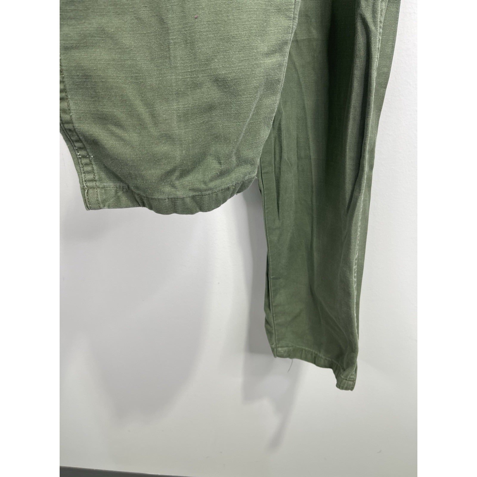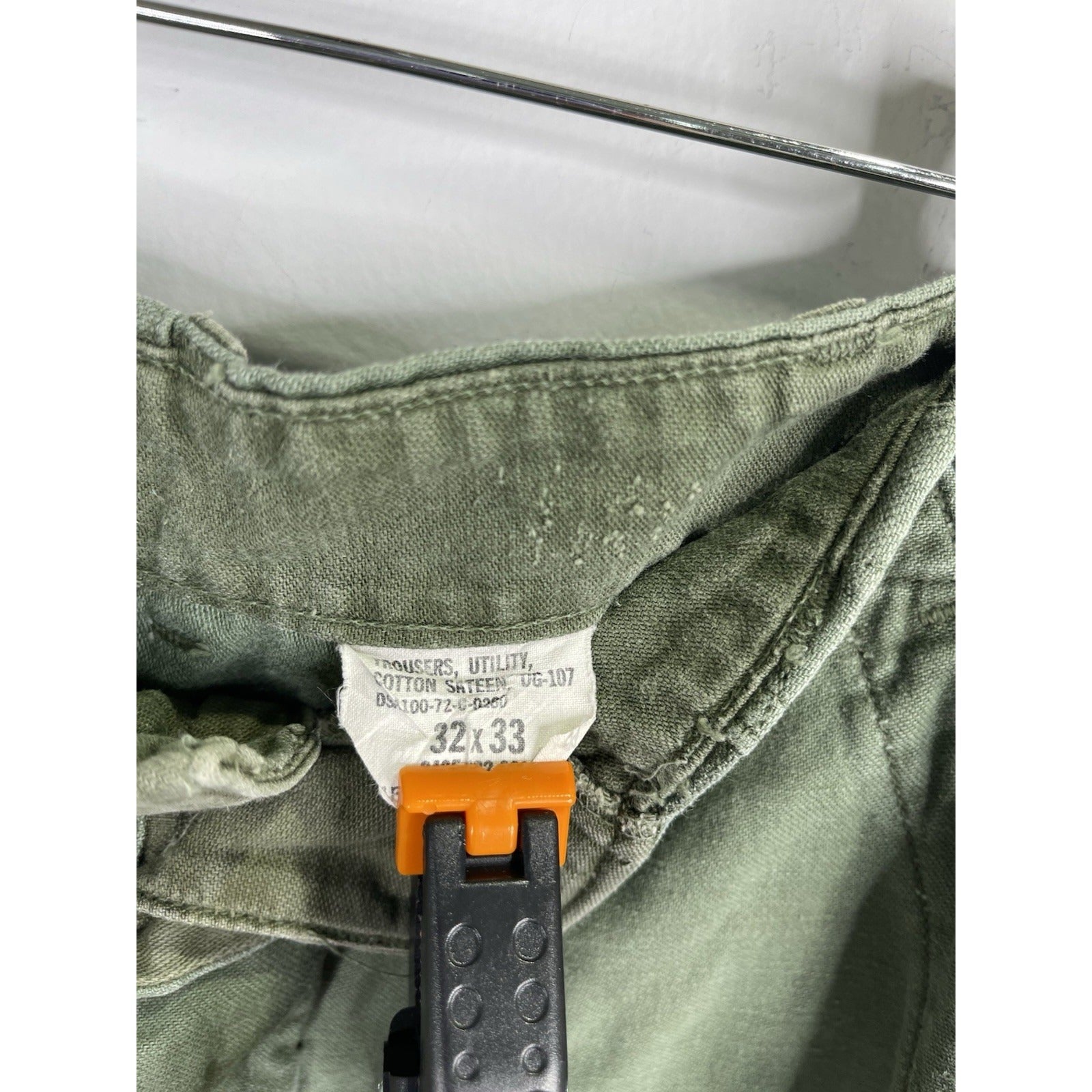 These Men’s Green Vintage Sateen Utility Military Trouser Pants in size 32x33 are a stylish and practical addition to any wardrobe. Made from comfortable cotton material, these pants feature a button closure, flat front design, and a straight leg style. The vintage military theme adds a unique touch, perfect for casual or workwear occasions. With a belted waist and easy care fabric, these pants offer both style and functionality, making them a versatile choice for everyday wear.