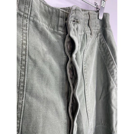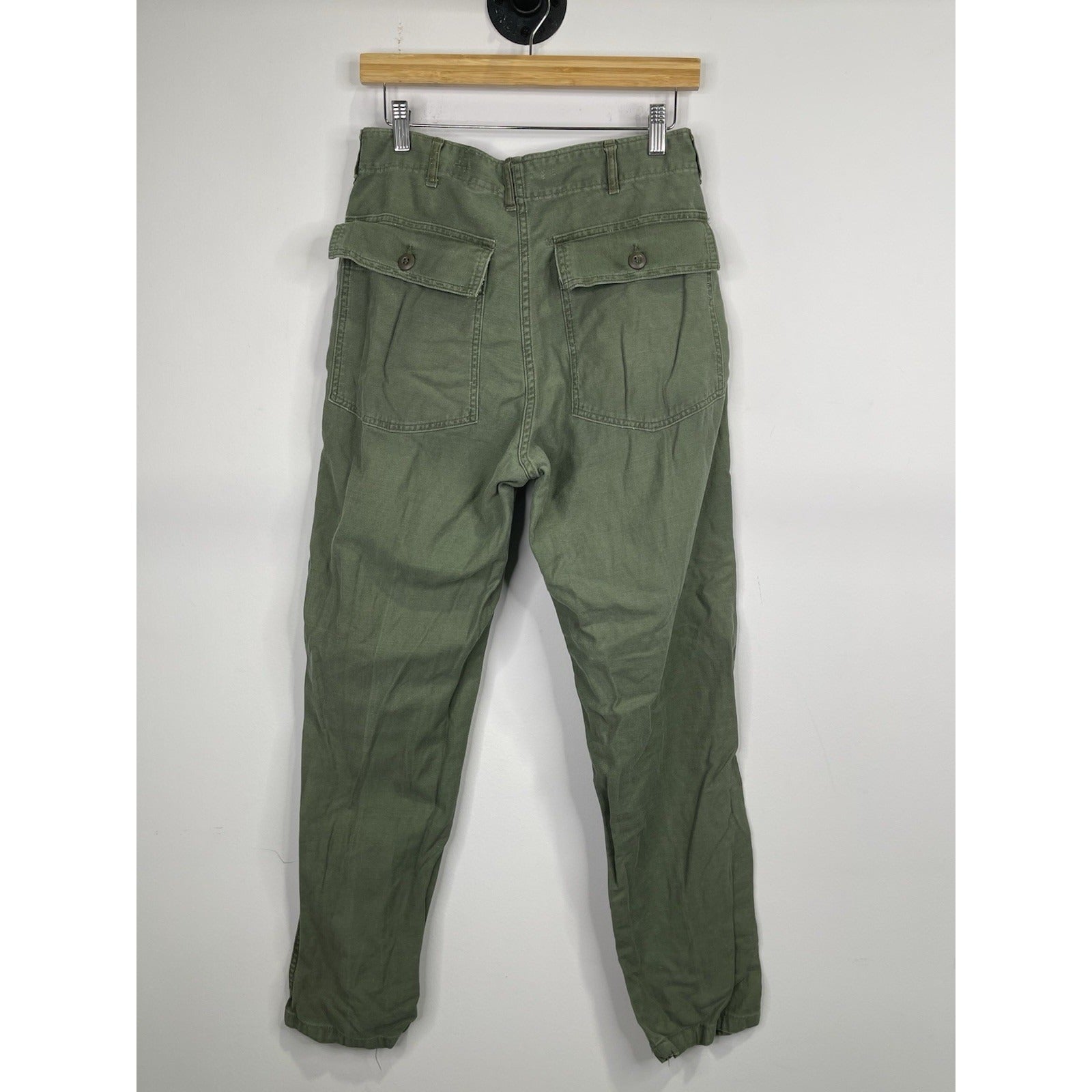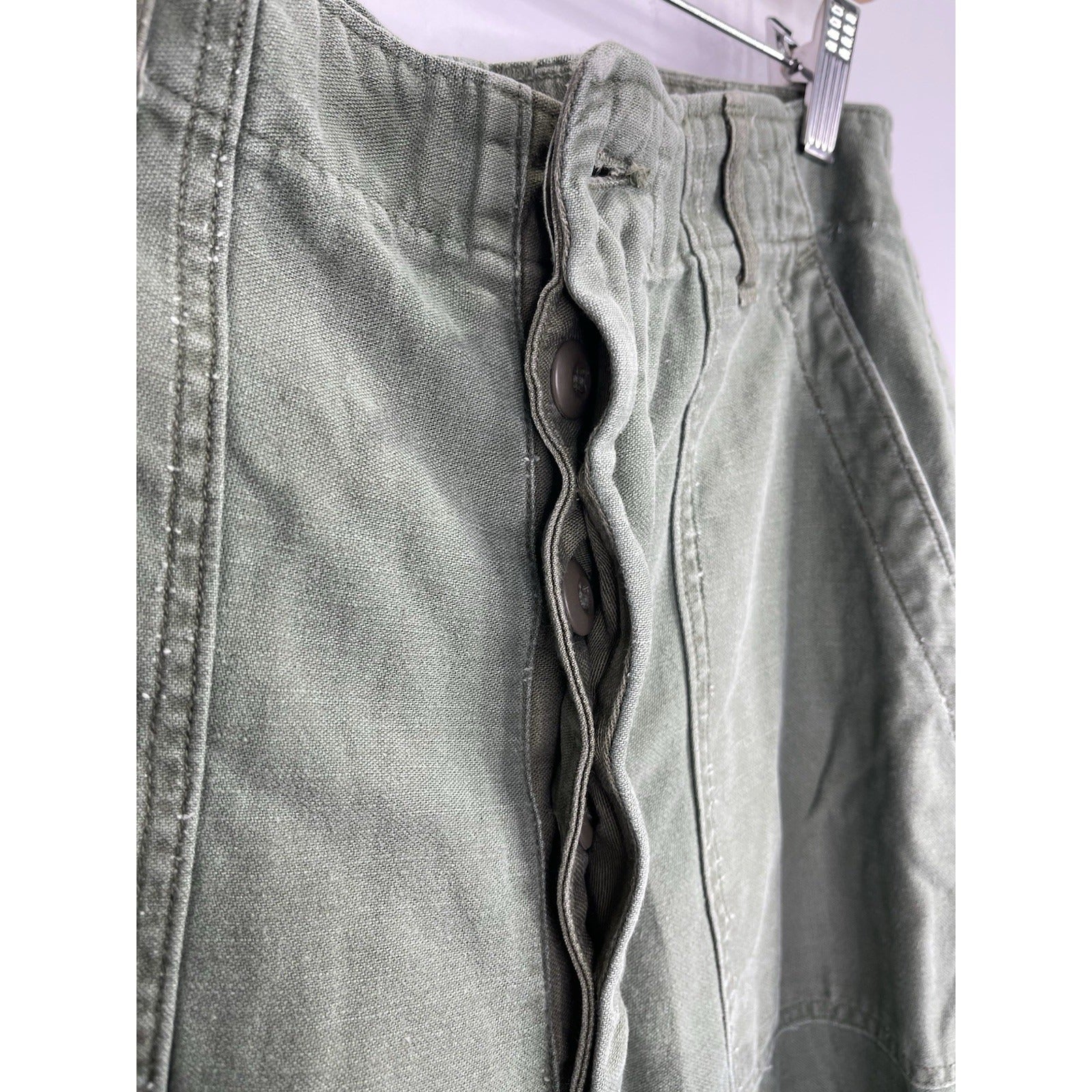 These Men’s Green Vintage Sateen Utility Military Trouser Pants in size 32x33 are a stylish and practical addition to any wardrobe. Made from comfortable cotton material, these pants feature a button closure, flat front design, and a straight leg style. The vintage military theme adds a unique touch, perfect for casual or workwear occasions. With a belted waist and easy care fabric, these pants offer both style and functionality, making them a versatile choice for everyday wear.