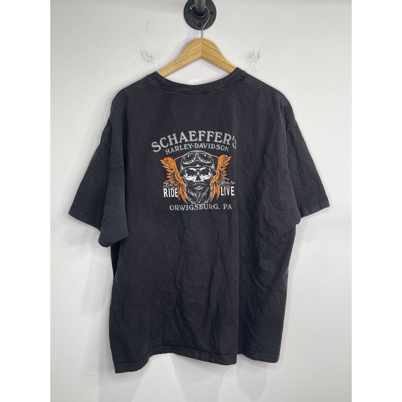 The Men’s Harley Davidson Halloween Themed Graphic Black T-Shirt is a stylish and comfortable addition to any man's wardrobe. Made of cotton, this shirt features a graphic print of the iconic Harley-Davidson brand, with a Halloween theme perfect for the fall season. The regular fit and crew neckline make it versatile for all seasons, while the breathable material ensures easy care and comfort. This double-sided shirt is a must-have for any Harley Davidson enthusiast looking to add a unique and festive touch to their look.