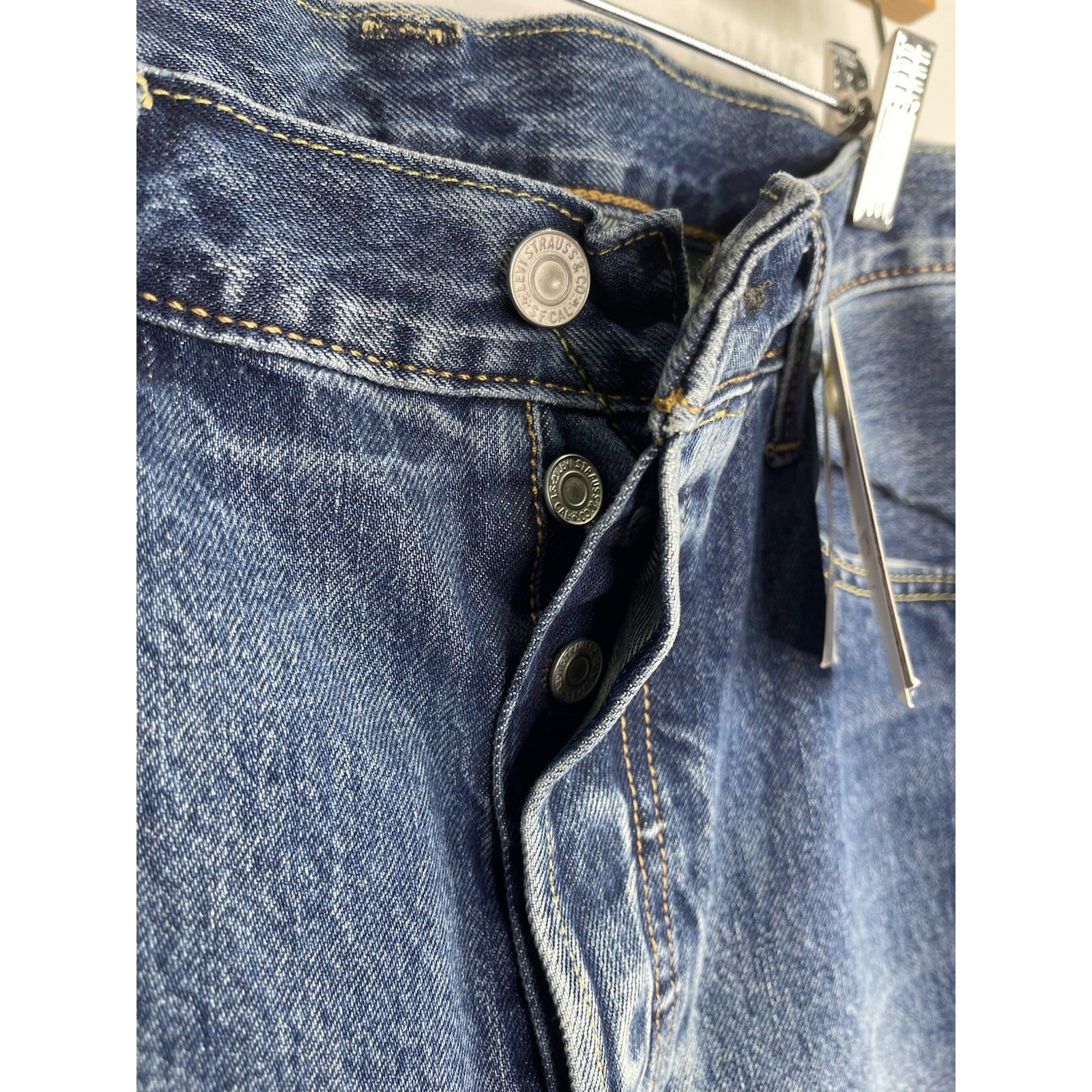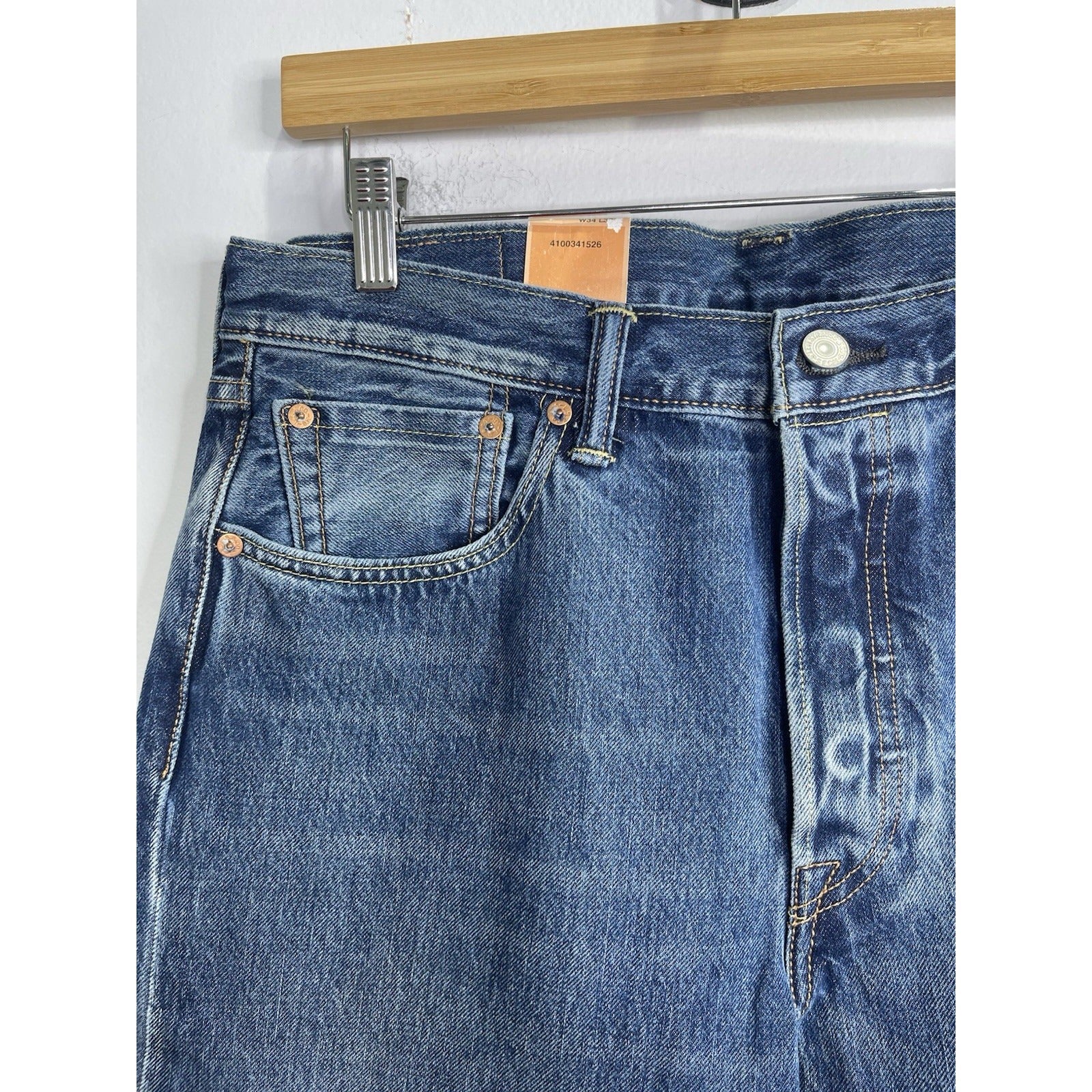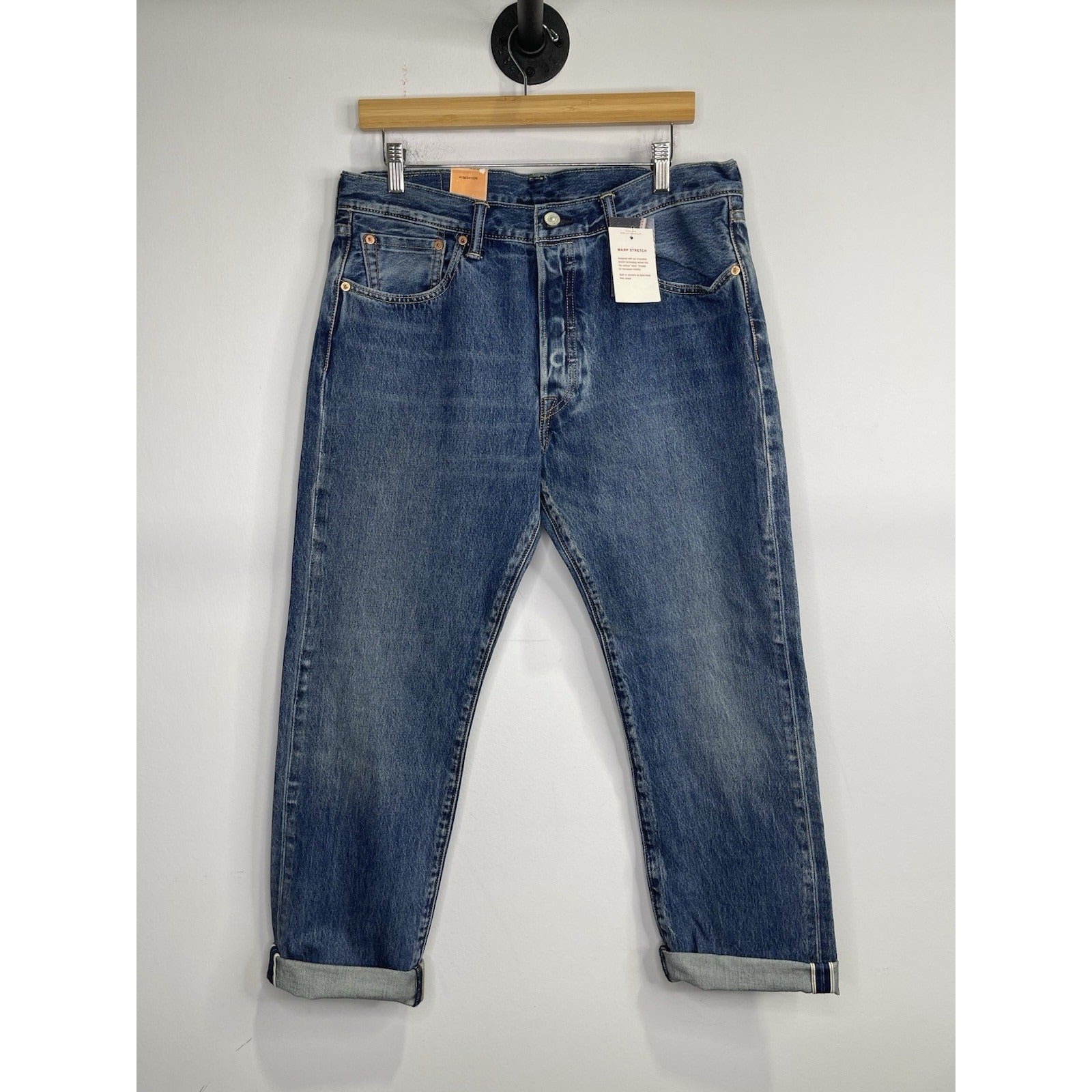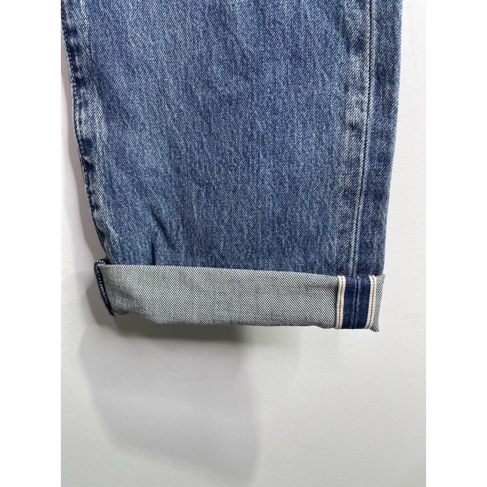 The Men's Levi’s 501 Warp Stretch Straight Leg Button Fly Selvedge Denim Jeans in size 34x30 are a classic and timeless wardrobe staple. Made of cotton denim with a rinse wash, these jeans feature a mid-rise and straight fit for a comfortable and on-trend look. With the iconic Levi's brand, 501 style, and button closure, these jeans are a versatile option for everyday wear. Perfect for those who appreciate a vintage vibe with a touch of 90s style, these jeans also have pockets for added functionality. Made in the United Kingdom, these jeans are a must-have for any denim enthusiast.