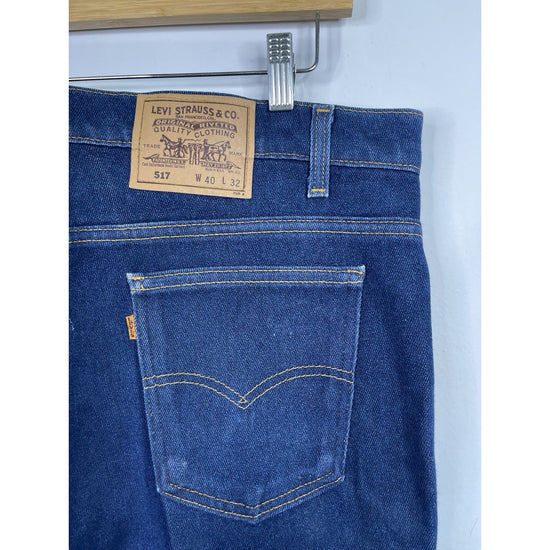 These Men's Levi's Strauss & Co. 517 Bootcut Dark Wash Blue Workwear Jeans feature a classic mid-rise fit with a 5-pocket design for added convenience. Made of durable denim with a dark wash finish, these jeans are easy to care for and comfortable to wear. The bootcut style adds a touch of flair, making them a versatile option for all seasons. With a zip and button closure, these jeans are a timeless addition to any man's wardrobe.