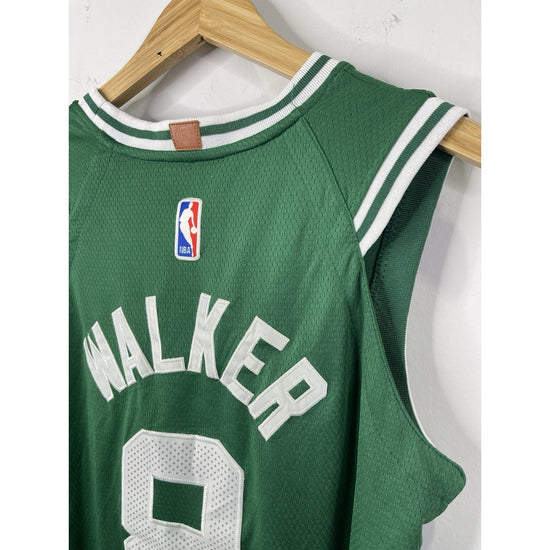 This product is a men's Nike NBA Boston Celtics #8 Kemba Walker Jersey, in size 44. The jersey is officially licensed by the National Basketball Association (NBA) and features the Boston Celtics team colors, green. It is a high-quality basketball fan apparel and souvenir, perfect for showcasing support for the Boston Celtics and Kemba Walker during the regular season.
