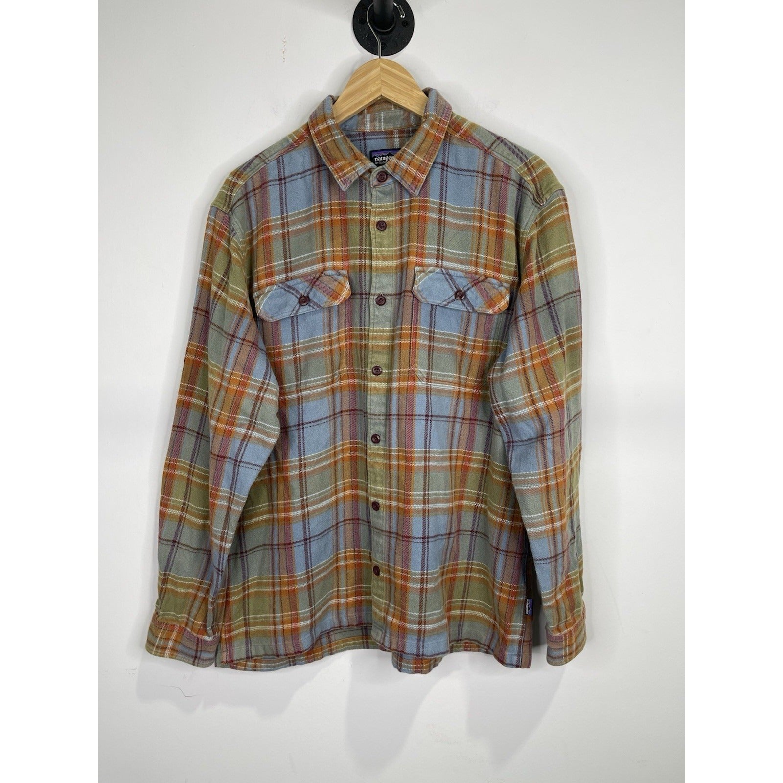 The Men's Patagonia Flannel Button-Up Shirt in size XL features a classic plaid pattern in organic cotton flannel, making it a lightweight and versatile retro-inspired piece. This shirt has a collared neckline, long sleeves, and a spread collar style. With a regular fit and all-season features, it is perfect for casual wear and can be styled with or without a tie. Button accents add a stylish touch to this timeless and sustainable choice from the reputable brand Patagonia.