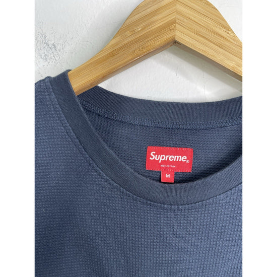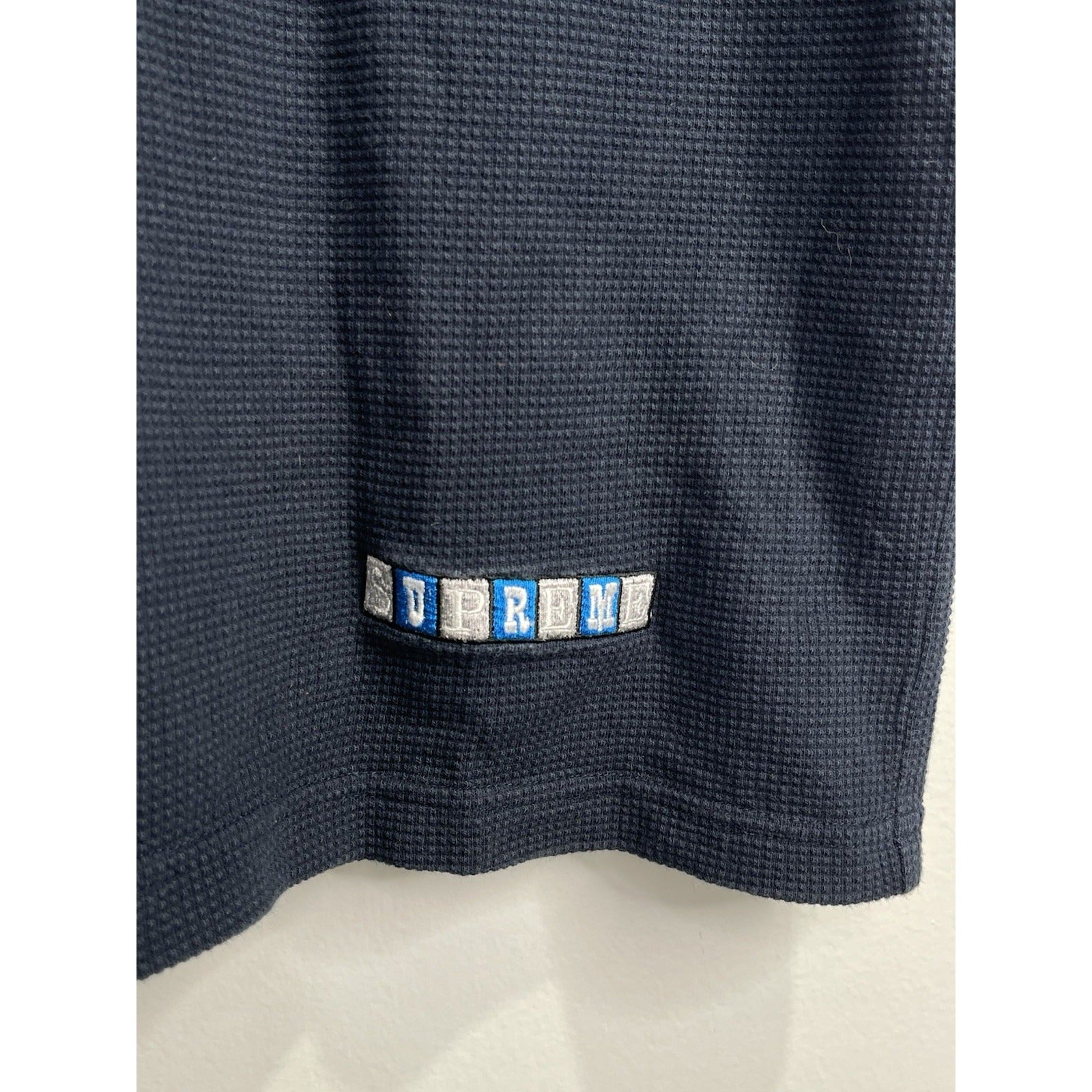The Men's Supreme Waffle Thermal Dark Blue T-Shirt is a stylish and comfortable option for any man's wardrobe. Made from cotton, this regular fit shirt features a crew neck and long sleeves, perfect for cooler weather. The thermal design adds extra warmth, while the solid blue color and designer theme make a bold statement. With the Supreme brand name and exclusive HQ model, this t-shirt is a must-have for any fashion-forward individual looking for a quality piece.