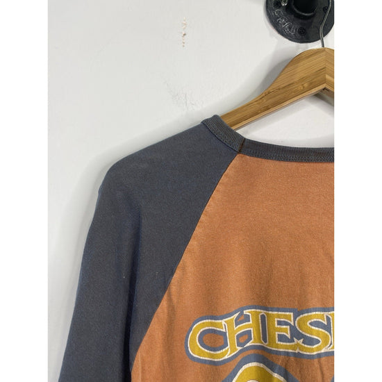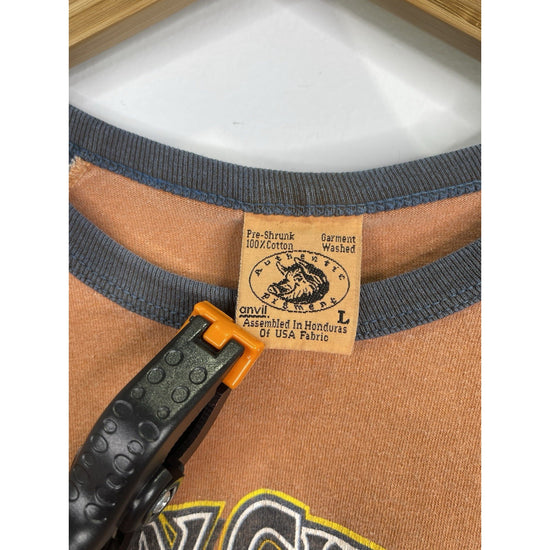 This Men's Vintage 2005 Kenny Chesney Raglan T-Shirt in size L is a rare gem from the Somewhere In The Sun Tour. Featuring a 3/4 sleeve design with a crew neck, this orange shirt is made of cotton with a regular fit and is suitable for all seasons. The double-sided design showcases the iconic Kenny Chesney character and is perfect for fans of Western, beach, music, summer, country, and band themes. With the brand Anvil and a vintage touch, this T-shirt is a must-have for any Kenny Chesney enthusiast looking to add a nostalgic piece to their wardrobe.