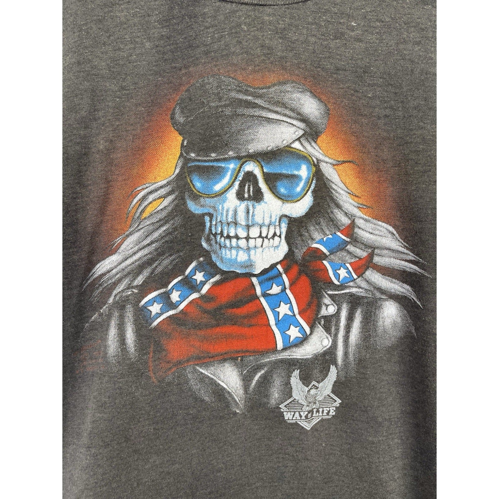 The Men’s Vintage 3D Emblem “Way Of Life” Biker Gray T Shirt in size Medium is a classic piece with a graphic print featuring a biker theme. Made from cotton, this short sleeve shirt has a crew neck and regular fit, making it comfortable for all seasons. The vintage design adds a unique touch to the piece, perfect for enthusiasts looking to make a statement with their wardrobe. Easy to care for and breathable, this shirt is a stylish and practical addition to any collection.