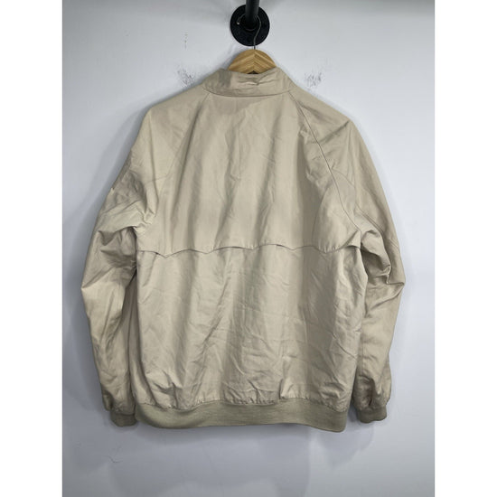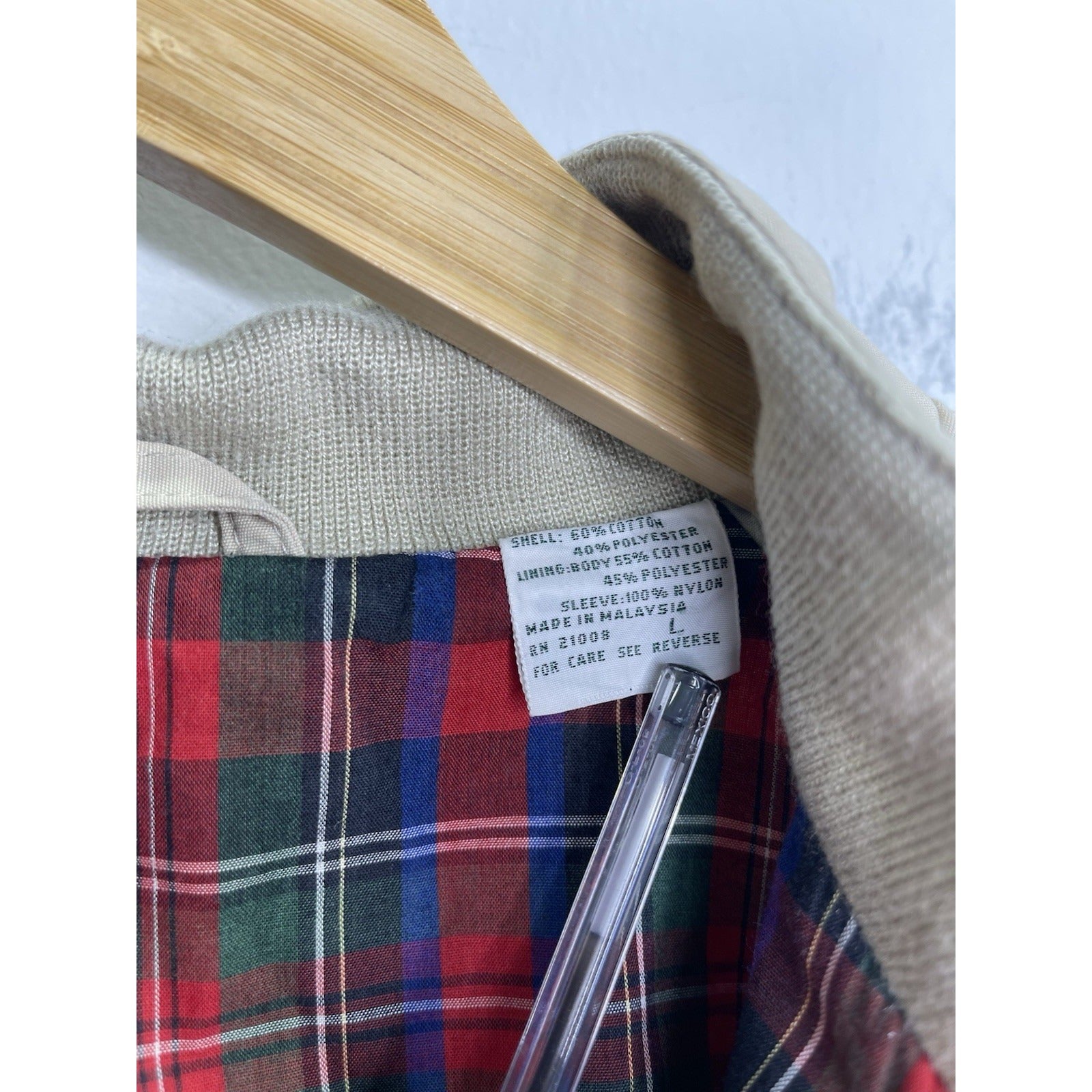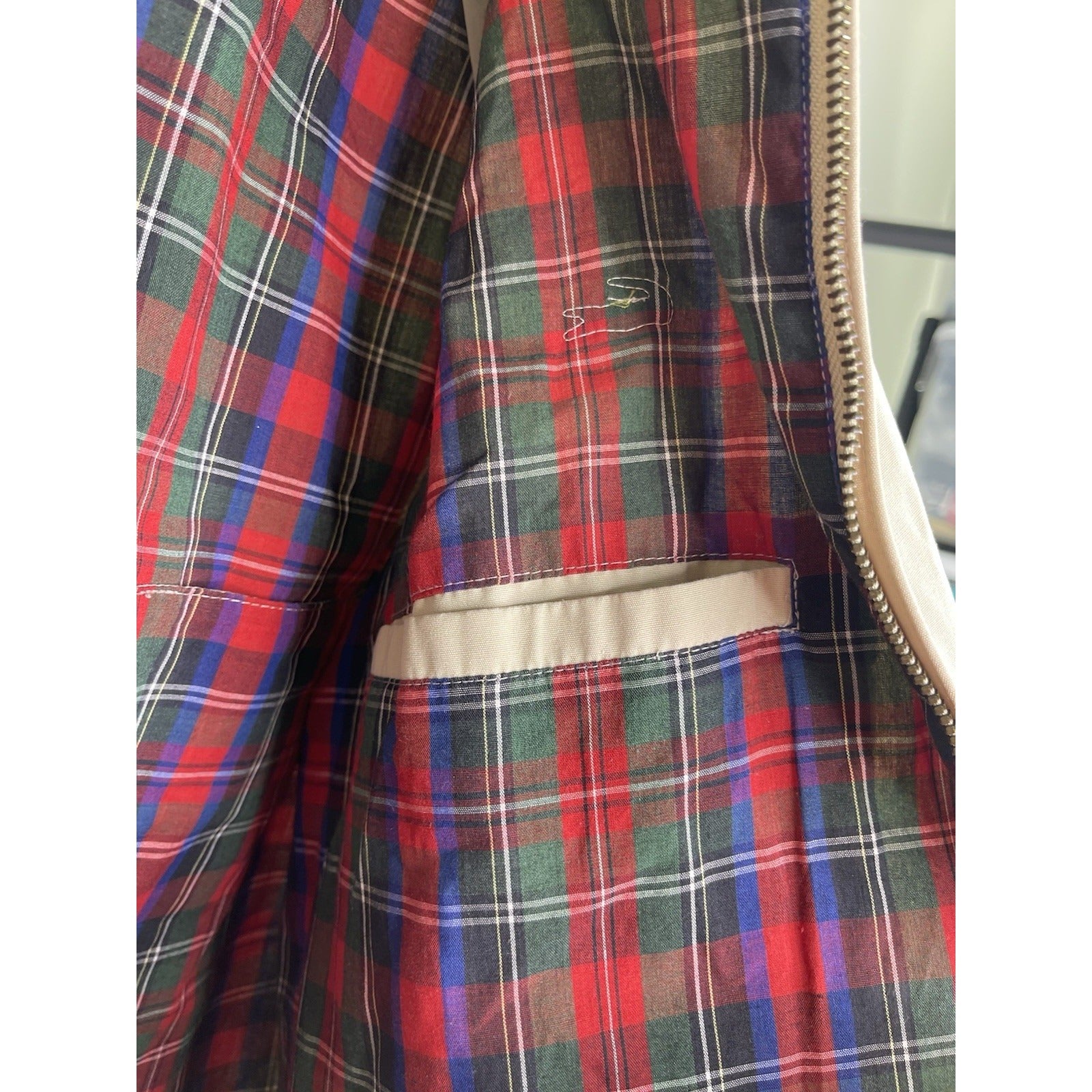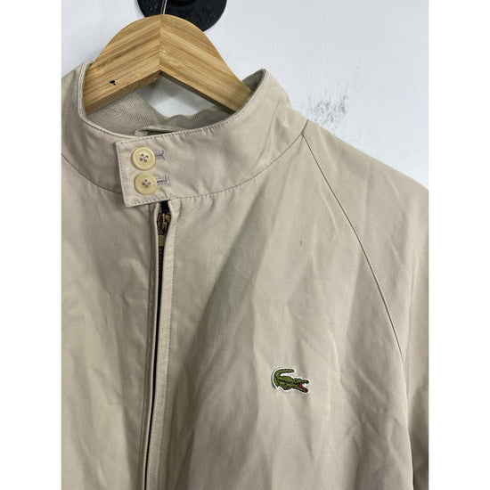This Men's Vintage 80s Izod Lacoste Lined Cafe Racer Bomber Jacket in beige khaki is a stylish and classic addition to any wardrobe. Made with a blend of cotton and polyester, this solid-colored jacket features a zip and button closure, making it perfect for casual or workwear occasions. The vintage design, lined interior, and 80s theme add a unique touch to this bomber jacket, perfect for walking or golfing activities. With its regular fit and iconic Lacoste branding, this jacket is a versatile and timeless piece for any man's closet.