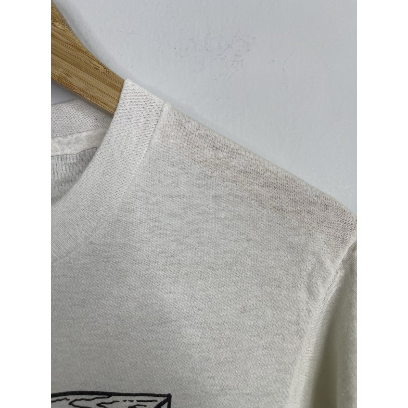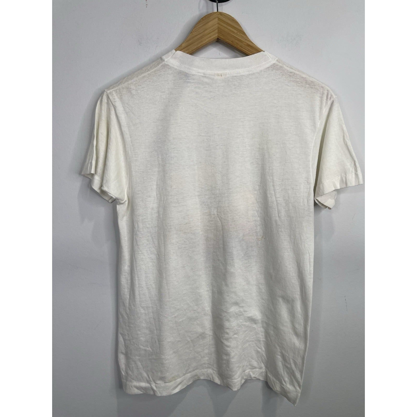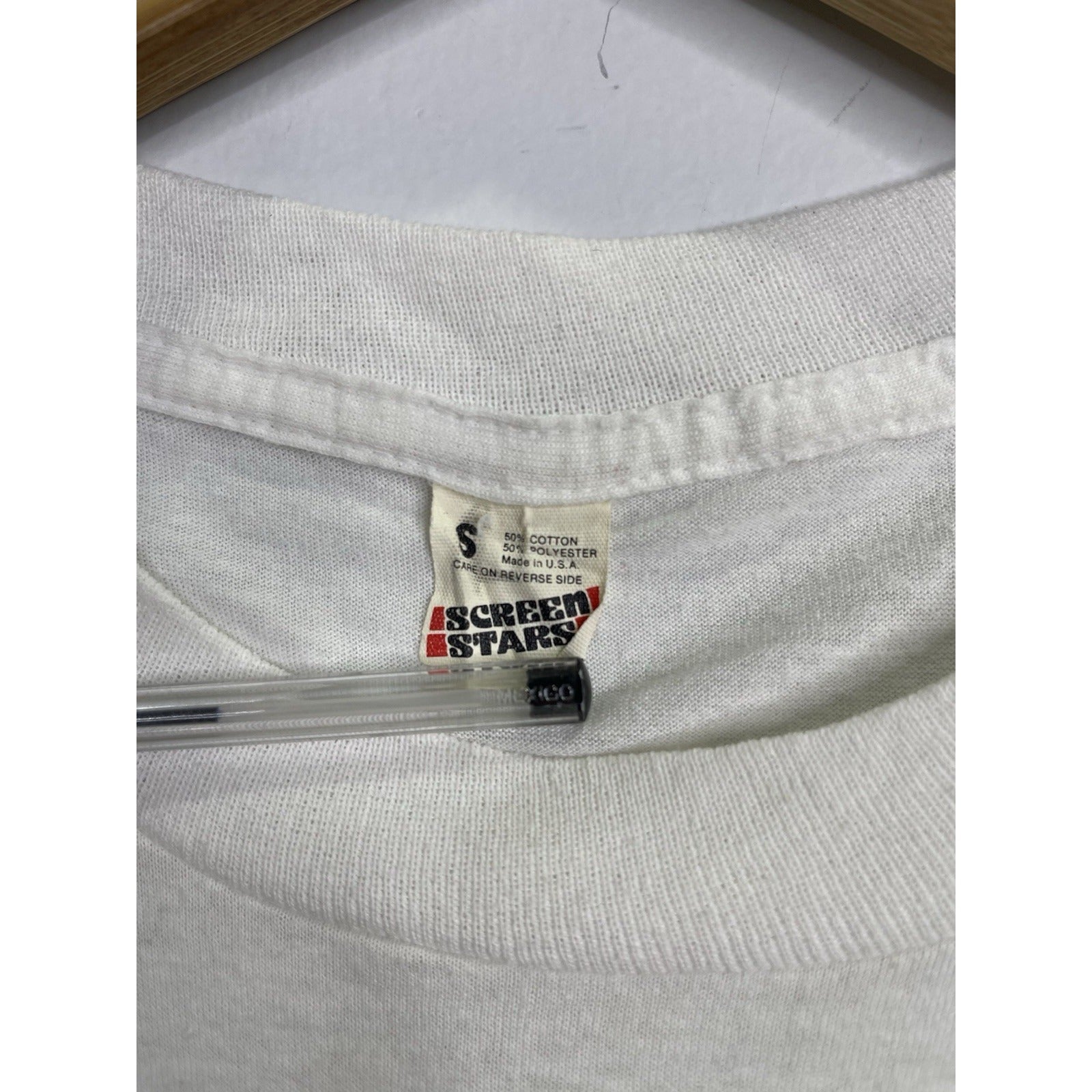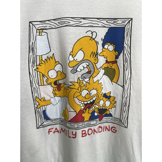 This Men’s Vintage 80s The Simpsons Family Bonding Graphic T-Shirt in size Small features a classic crew neck design with a Bart Simpson logo accent. Made of cotton knit fabric, this regular fit shirt is perfect for year-round wear with its easy care, collarless style. Show off your love for the iconic cartoon series with this retro tee from Screen Stars, ideal for any fan of The Simpsons.