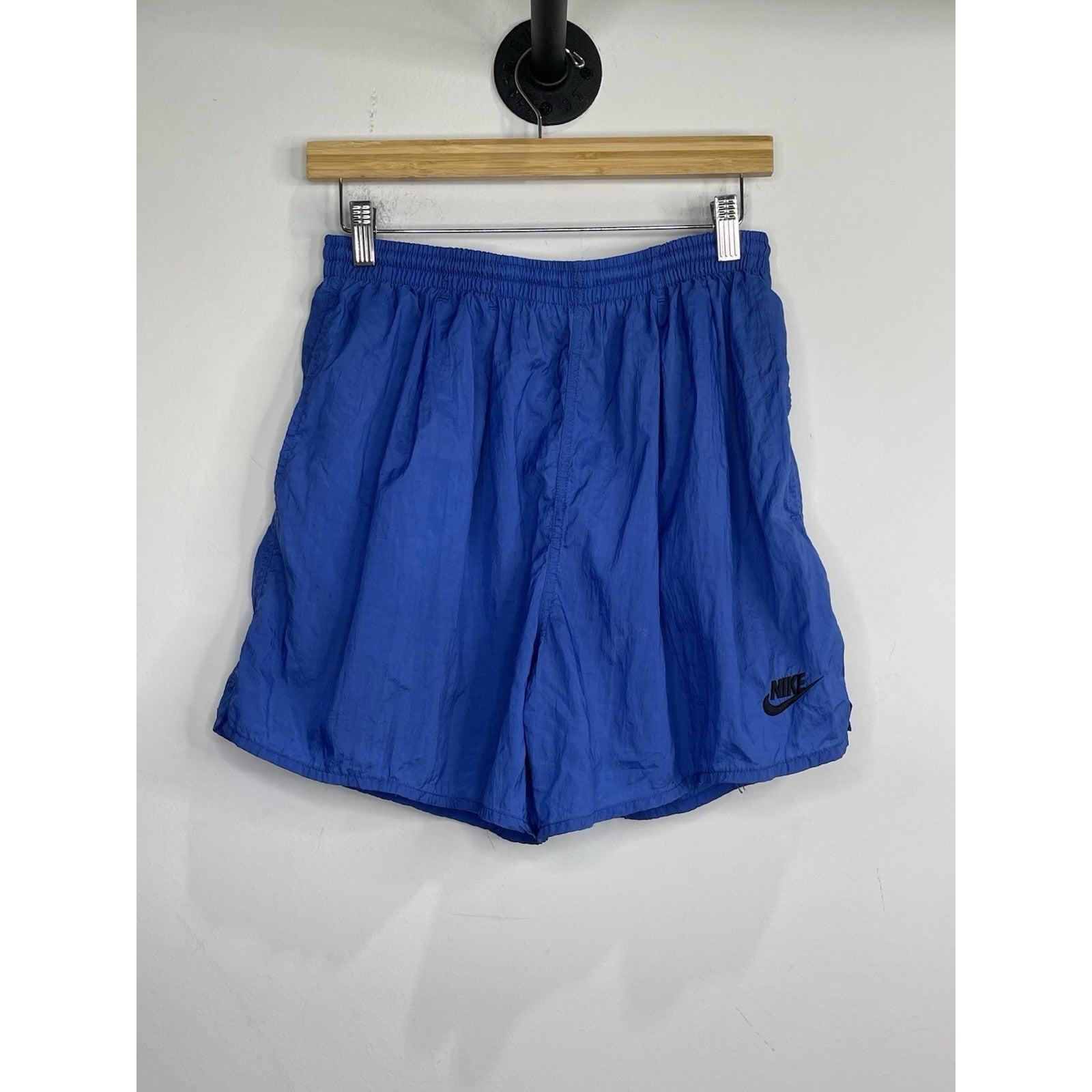 This Men’s Vintage 90s Nike Swoosh Mesh Lined Swim Gym Shorts in Blue Nylon are perfect for various occasions such as running, soccer, workout, casual wear, and gym sessions. They feature a drawstring closure, flat front design, and logo accents. Made of lightweight nylon material, these shorts are machine washable and easy to care for. With a regular fit and 5-inch inseam, they are ideal for a comfortable and stylish look while representing the iconic Nike brand and 90s sportswear trends. Perfect for those who appreciate retro vibes and athletic wear.