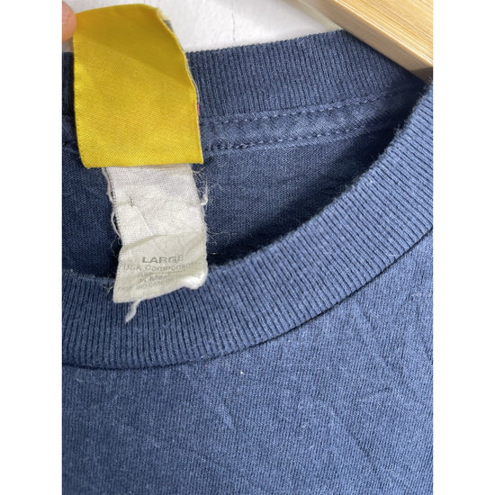 This Men's Vintage Big Dogs Navy Blue 'Fishing At The Crack Of Dawn' T-Shirt in size L features a graphic print design with the brand's logo accent. Made of breathable cotton material, this regular fit shirt has a crew neckline and short sleeves, making it suitable for all seasons. The vintage theme adds a unique touch to this double-sided t-shirt, perfect for any dog lover or fan of the Big Dogs brand.