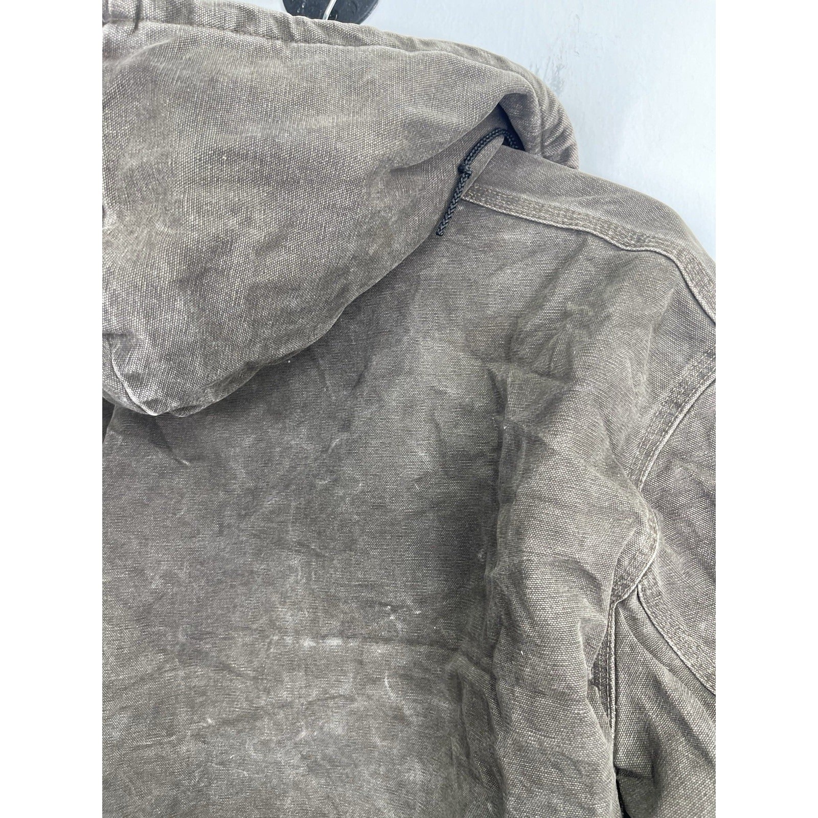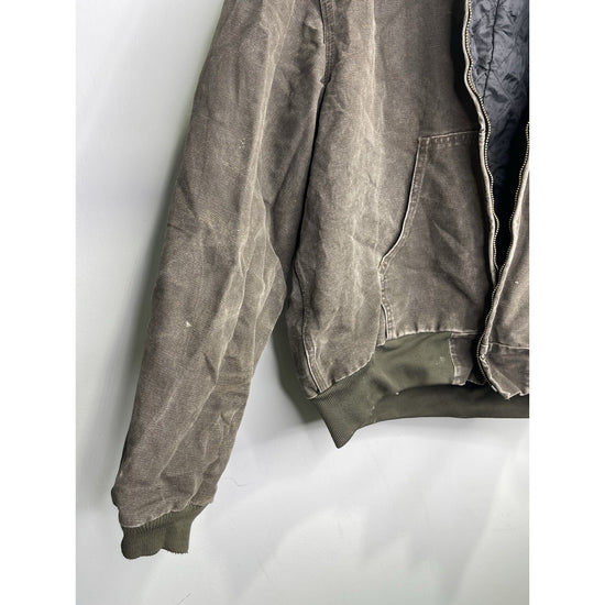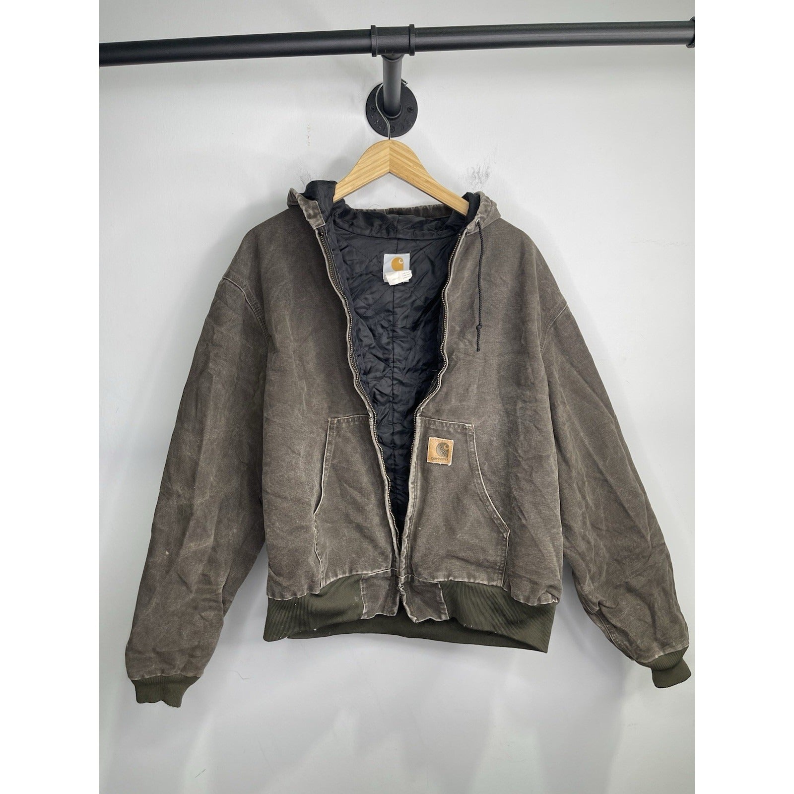 This Men’s Vintage Carhartt J06 Brown Jacket in size XL is a classic piece of casual and workwear outerwear. Made of durable cotton canvas with a lined interior, it features a hood, zip closure, and the iconic Carhartt logo accent. With a mid-length design and solid brown color, this jacket is perfect for the winter, fall, and spring seasons. Whether you're walking, hunting, or skateboarding, this jacket will provide both style and functionality for any outdoor activity. Made in the United States, this 90s-inspired jacket is a timeless addition to any wardrobe. BROKEN ZIPPER