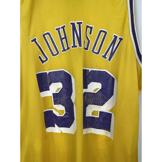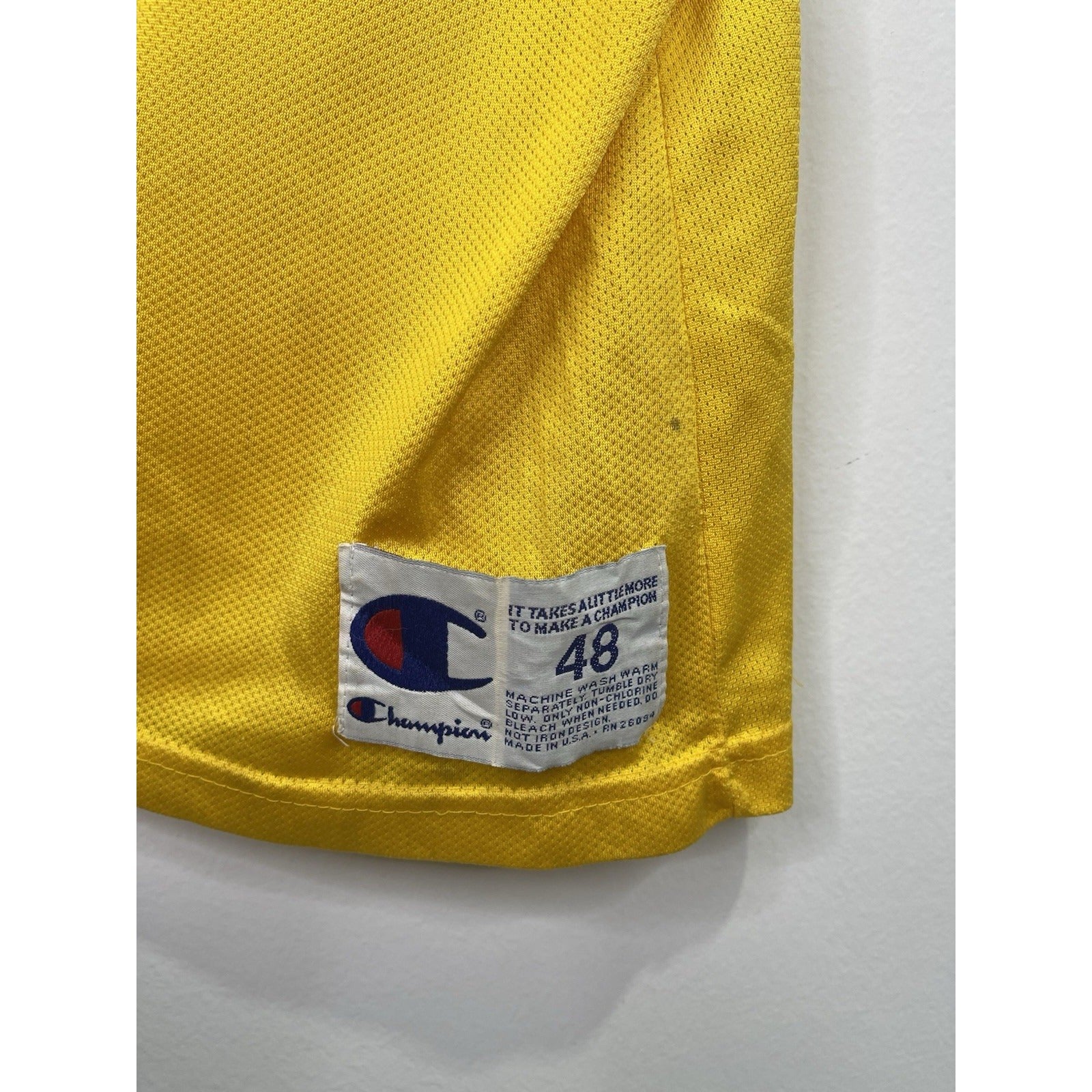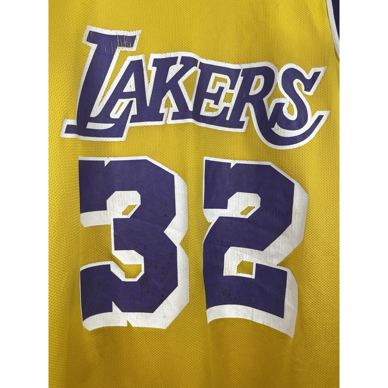 The Men’s Vintage Champion Magic Johnson #32 Los Angeles Lakers Jersey in size 48 is an officially licensed product dedicated to the legendary basketball player. This yellow jersey represents the Los Angeles Lakers team in the National Basketball Association (NBA) and is perfect for any fan of Magic Johnson or the Lakers. Made in the United States by Champion, this jersey is a must-have for basketball enthusiasts looking to show their team spirit and nostalgia for the sport.
