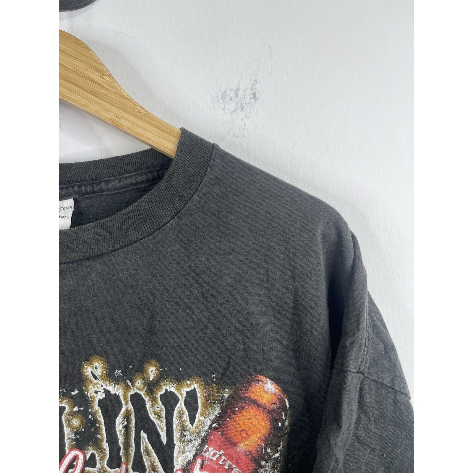 This Men's Vintage Dale Earnhardt Jr Budweiser NASCAR Racing Graphic T Shirt in size XL is a classic piece for any fan of NASCAR and vintage style. Made of cotton with a crew neck and short sleeves, this black shirt features a graphic print with the iconic Budweiser branding. It is a regular fit shirt and has been pre-shrunk for added durability. The shirt pays tribute to Dale Earnhardt Jr and his association with Budweiser, making it a must-have for collectors and fans of the sport.