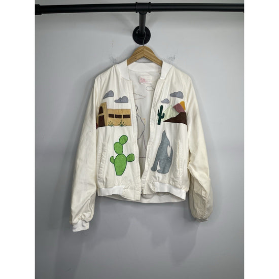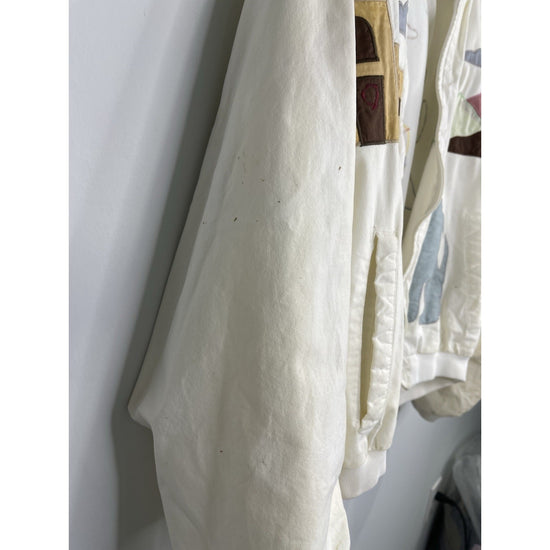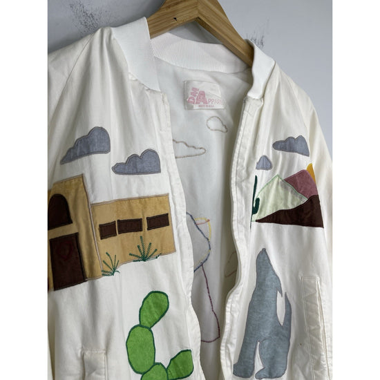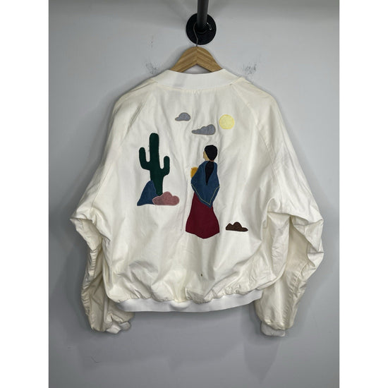 The Men’s Vintage DM Apparel White Desert Village Patchwork Bomber Jacket in size 2XL is a stylish and versatile outerwear piece for casual occasions. Made from durable cotton canvas fabric, this jacket features a zip closure, making it easy to put on and take off. The vintage design adds a touch of nostalgia, while the bomber style gives it a trendy edge. Perfect for walking and hiking, this jacket from DM Apparel is sure to keep you looking and feeling great in the great outdoors.