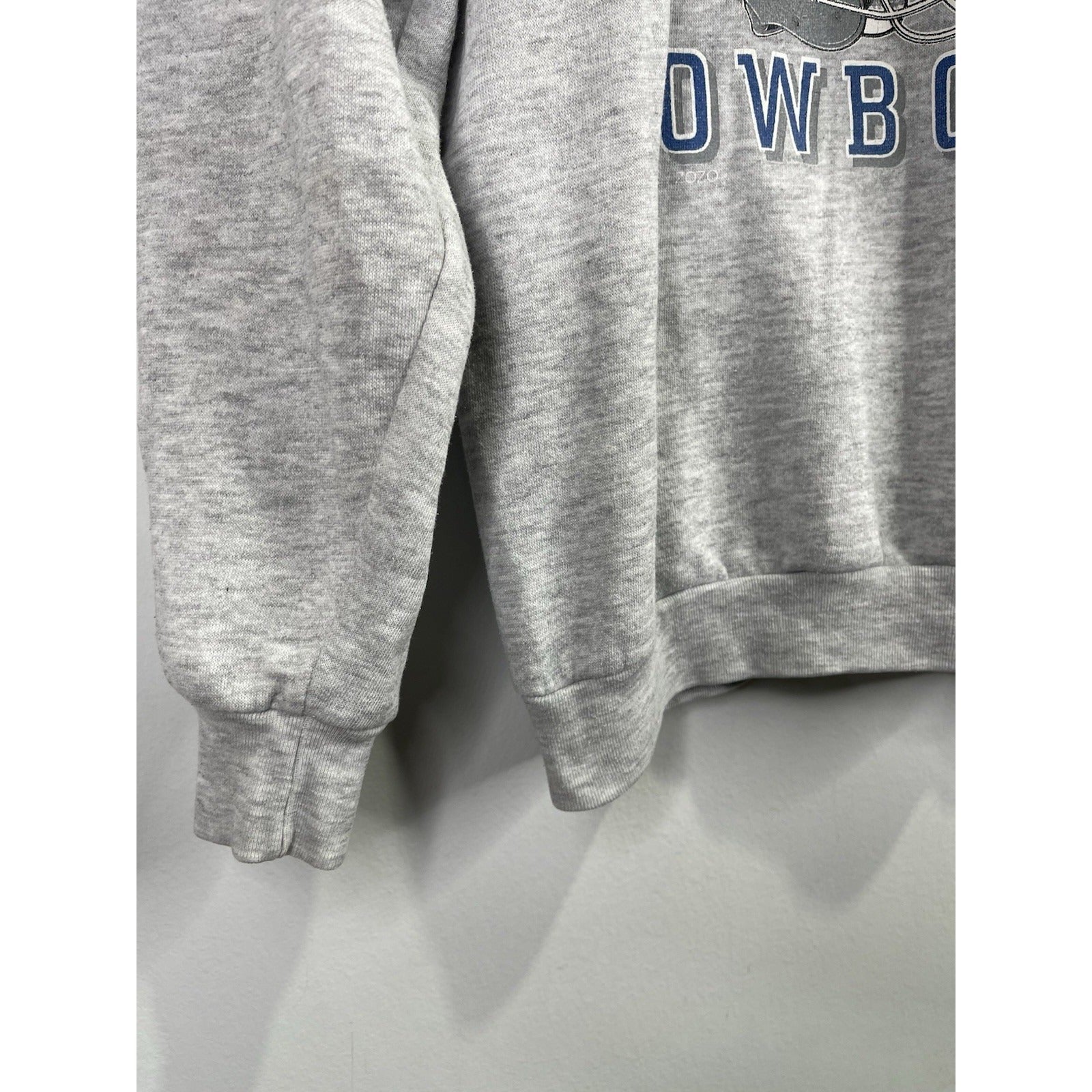 This Men’s Vintage Gray Dallas Cowboys Graphic Sweatshirt in size small is a stylish and comfortable addition to any fan's wardrobe. Made from soft cotton fleece, this regular fit pullover features a classic crew neck and long sleeves. The heavyweight sweatshirt is perfect for all seasons, and the graphic print with the iconic Dallas Cowboys logo adds a touch of retro flair. Ideal for activities like gym training or casual walks, this sweatshirt combines practicality with a nod to the team's iconic theme.