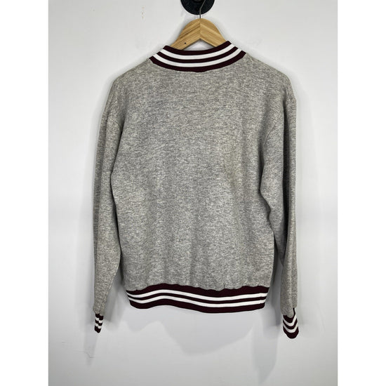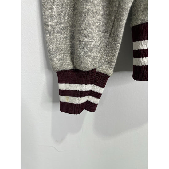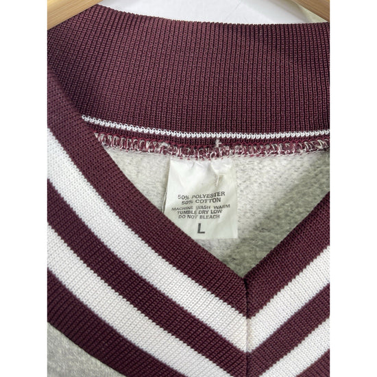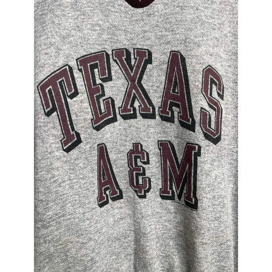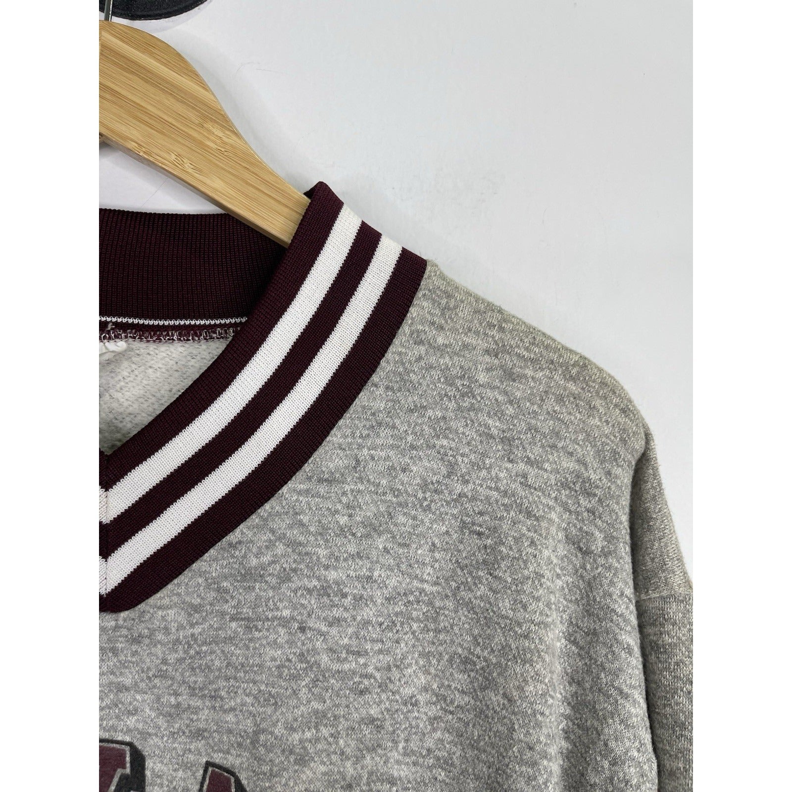 This Men’s Vintage Gray Weave Texas A&M College V-Neck Sweatshirt in size XL is a classic and cozy piece perfect for fans of the college or anyone looking for a comfortable sweatshirt with a touch of vintage charm. The regular fit and heavyweight fabric make it suitable for all seasons and various activities such as gym training, walking, and even football. The reverse weave design and solid gray color add a unique and stylish element to this pullover sweatshirt, making it a versatile addition to any man's wardrobe.