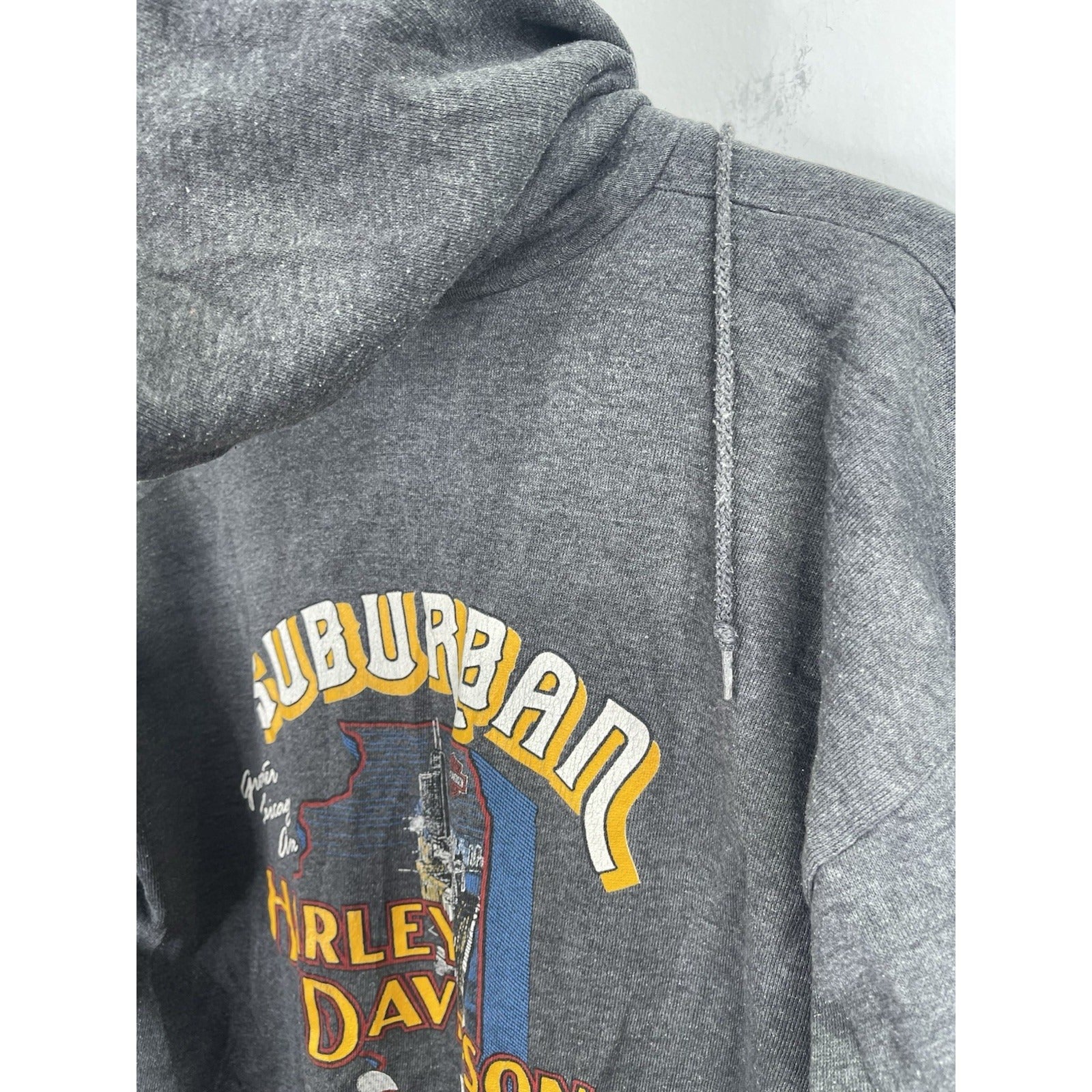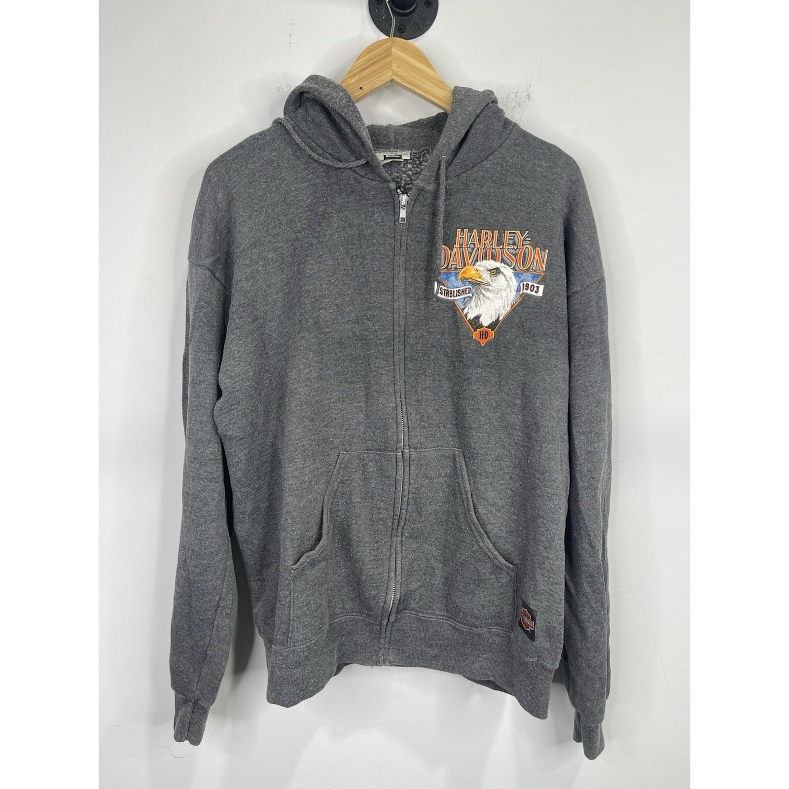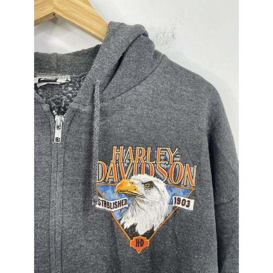 The Men’s Vintage Harley Davidson Gray Double Sided Zip Up Jacket in size L is a collectible piece featuring the iconic Harley-Davidson brand. This jacket showcases the classic American motorcycle theme with its double-sided design and gray color, making it a unique and stylish addition to any Harley-Davidson enthusiast's collection.