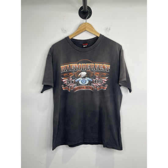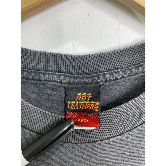 This Men’s Vintage Hot Leathers Biketoberfest 2009 Daytona Beach Graphic T Shirt in size L is a unique and stylish piece perfect for fans of motorcycle culture and beach theme. The shirt features a classic crew neck and short sleeves, with a leather material that adds a rugged touch. The graphic print on both sides of the shirt showcases the event and location, making it a great addition to any collection. The regular fit ensures comfort for all seasons, while the easy care feature makes it convenient for everyday wear.