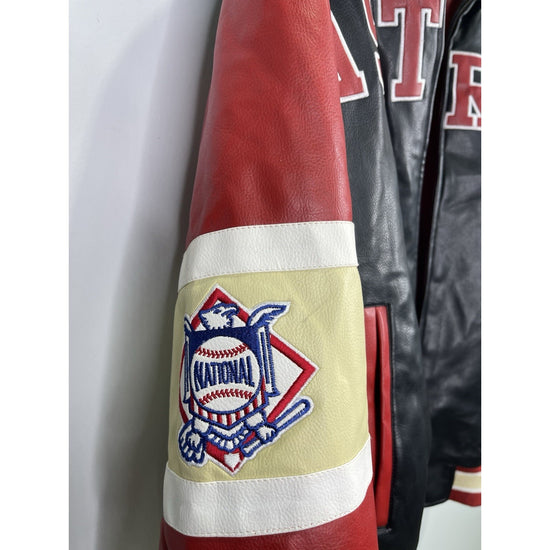 This Men's Vintage Leather G Sports Houston Astros Lined Bomber Jacket in size large is a classic and stylish outerwear option. Made with a durable leather outer shell and lined with cozy polyester, this jacket features a geometric pattern in multicolor, perfect for fans of the Houston Astros. The bomber style and spread collar add a touch of retro nostalgia, making it a unique and eye-catching choice for any baseball enthusiast looking to stay warm in style. * BROKEN ZIPPER*